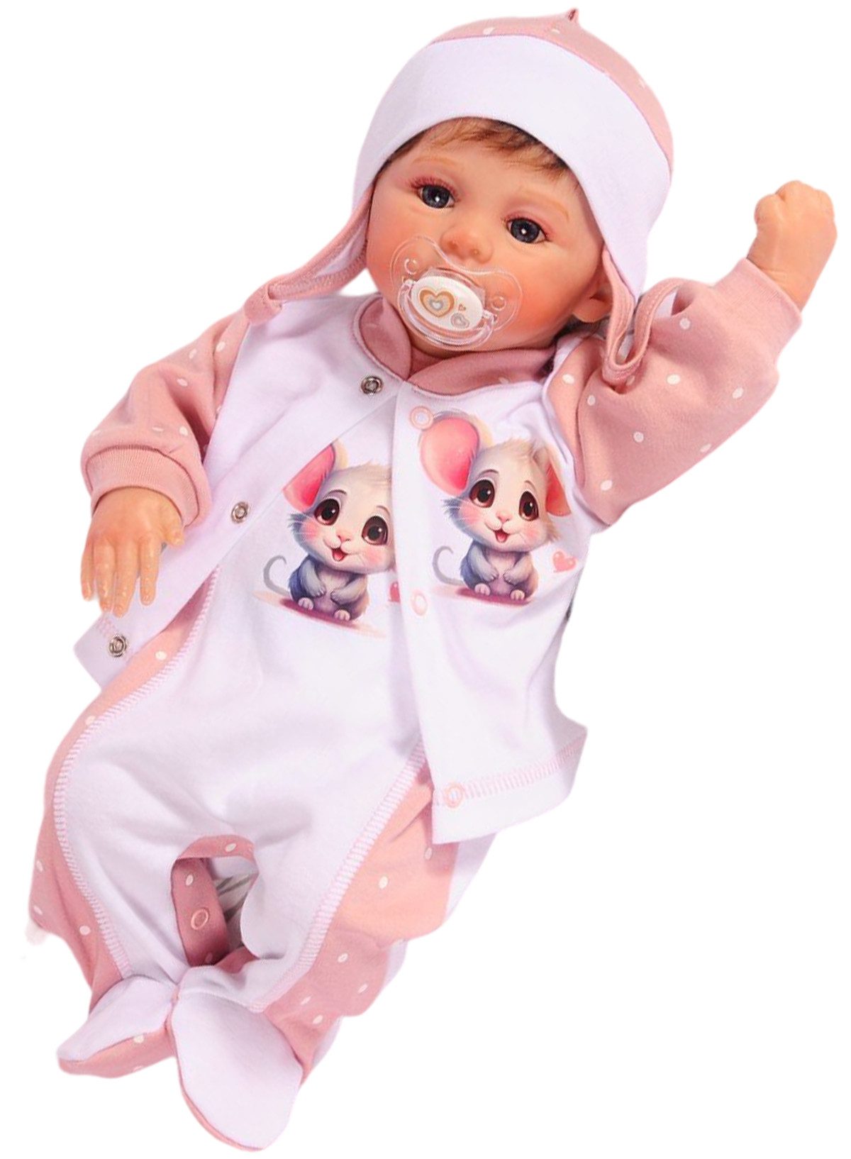Erstlingsausstattung: Dieses entzückende 3-teilige Baby-Set umfasst einen ärmellosen Strampler in sanftem Weiß / Puderrosa mit einem bezaubernden Punktenmuster und einem niedlichen Mäuschen-Print. Für einen sicheren Halt ist an der Ferse eine Gummi integriert. Passend dazu gibt es ein Hemdchen in derselben Farbe, mit Ärmeln und einem Muster aus Pünktchen. Die Mütze in Puderrosa / Weiß komplettiert das Ensemble mit einem zauberhaften Punktenmuster und lässt sich bequem binden. Jedes Stück ist aus reiner Baumwolle gefertigt und bietet höchsten Komfort für die zarte Babyhaut. Ein perfektes Geschenk zur Geburt.