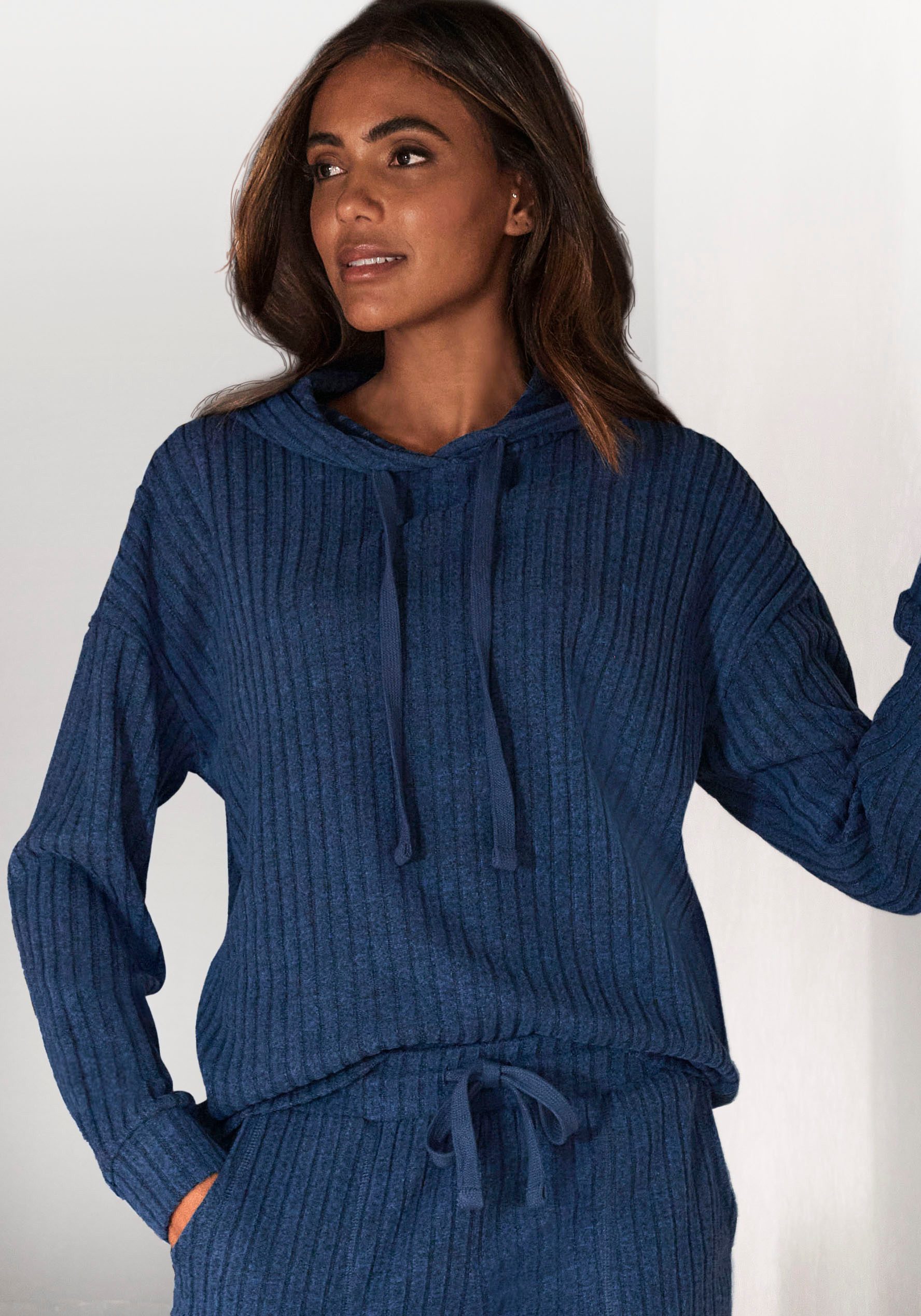 | Besondere Merkmale | Strickpullover mit Kapuze und in melierter Optik, Loungewear |
