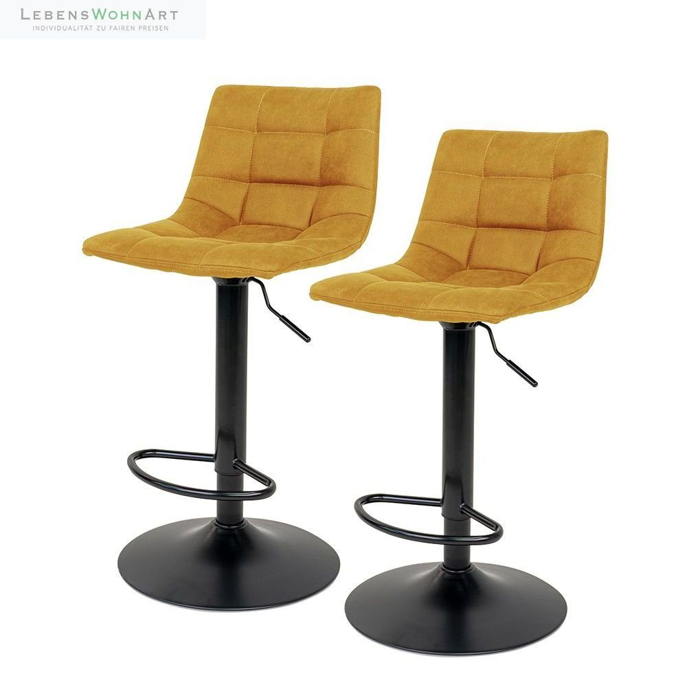 Dieser angesagte Barhocker besticht vor allem mit einer aufwendig gesteppten Sitzfläche aus Samt in einem eleganten Senfgelb, die einen tollen Kontrast gibt zu dem formschönen und in schwarz gehaltenen Tulpenfuß. Die drehbare Sitzschale des Barstuhls überzeugt mit seiner bequemen Polsterung, hier lässt es sich lange Stunden gemütlich Cocktails trinken! Der Sitzt lässt sich durch einen Hebel unter dem Sitz ganz einfach in der Höhe verstellen – so passt sich der Stuhl spielend leicht der Höhe Deines Bartisches an.