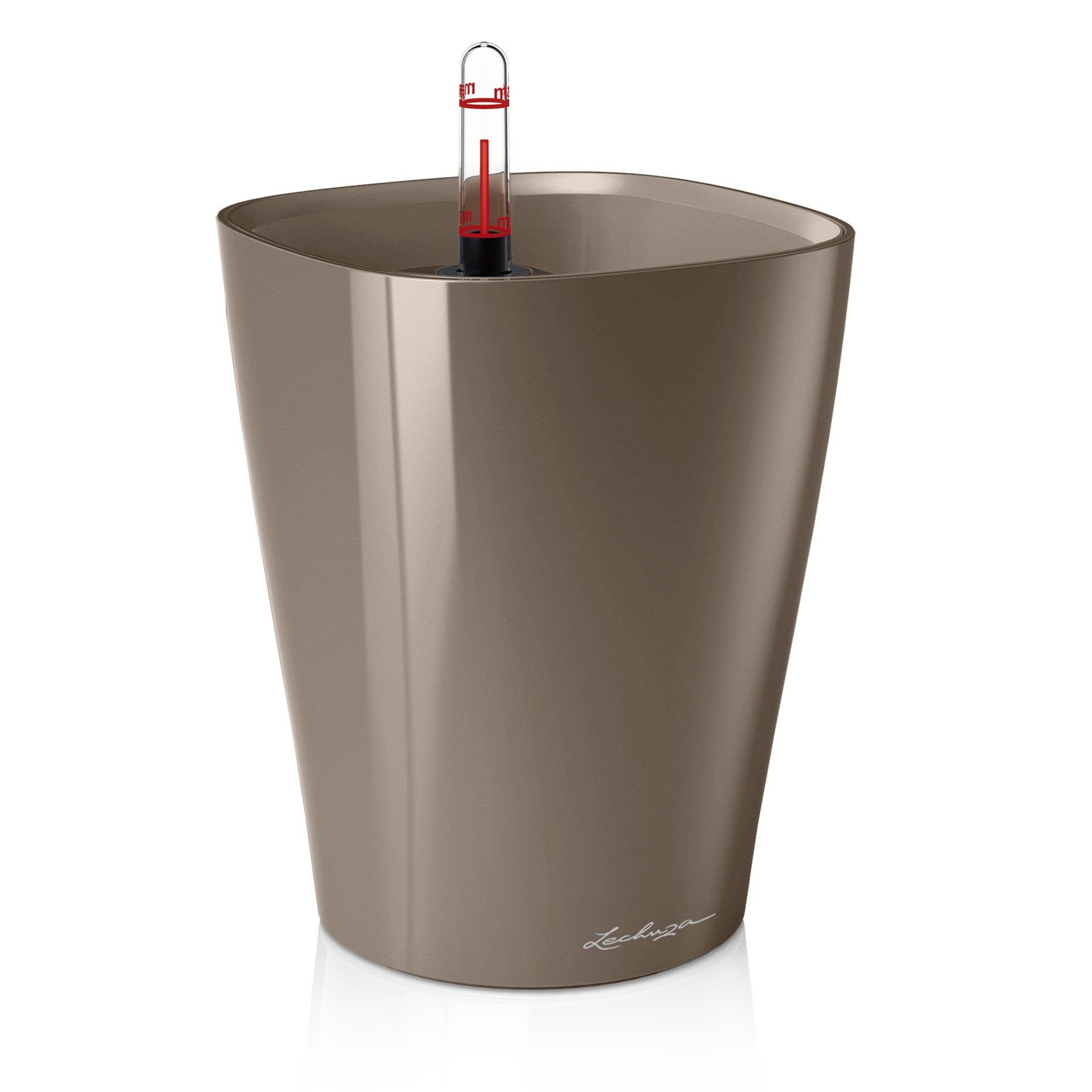Das Pflanzgefäß ist inklusive Pflanzeinsatz mit Überlauf und Erd-Bewässerungs-Set.