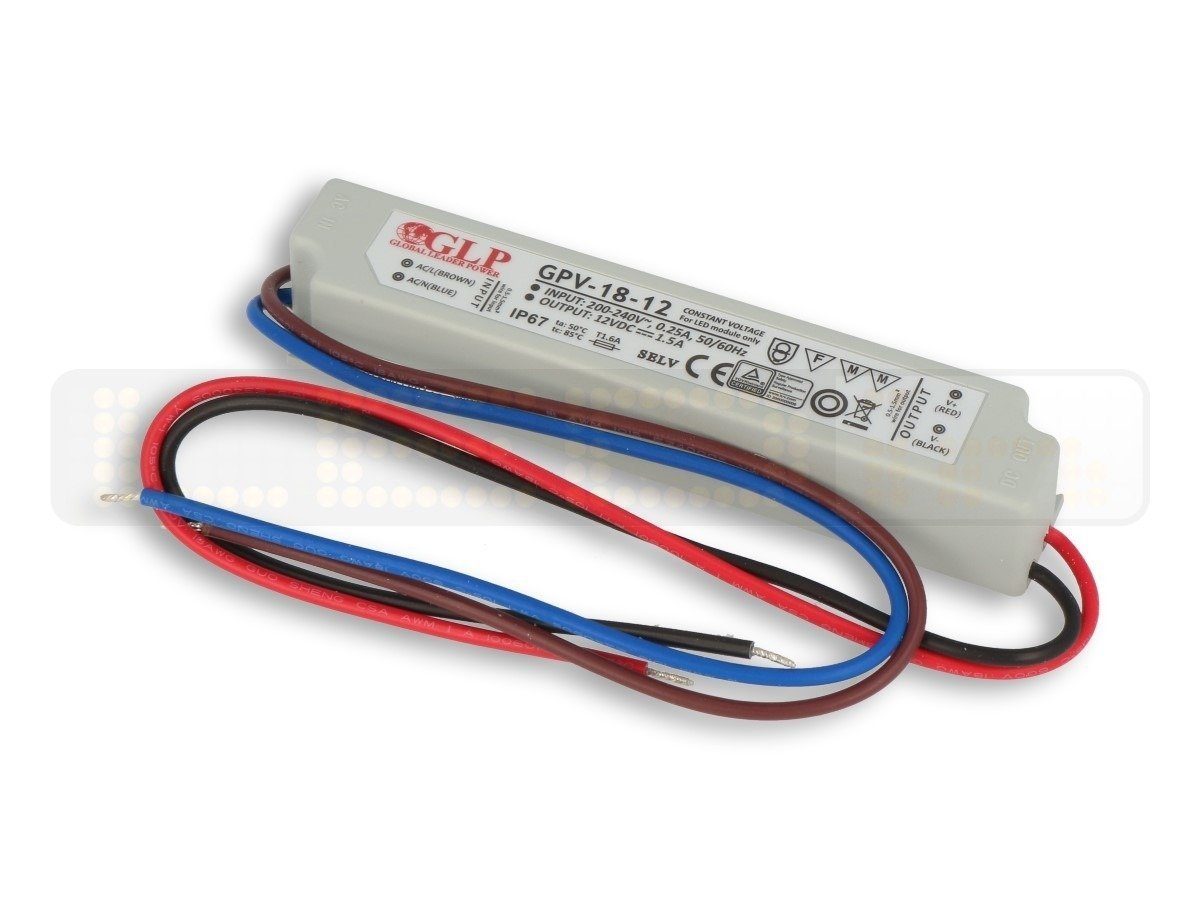 Ausgangsspannung: 18W (1,5A / DC 12 Volt), Eingangsspannung: 200 - 240V AC, 0,25A, / 50/60Hz