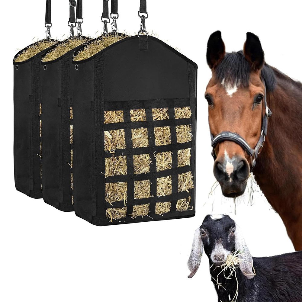 Hochwertiges Material: Diese Heusäcke für Pferde bestehen aus hochwertigem Oxford-Gewebe, das außergewöhnliche Festigkeit und Langlebigkeit gewährleistet. Doppelte Nähte erhöhen die Abriebfestigkeit und schützen effektiv vor Reißen oder Knabbern durch Tiere. Dieser Heusack ist besonders langlebig und kann über lange Zeit zuverlässig verwendet werden.