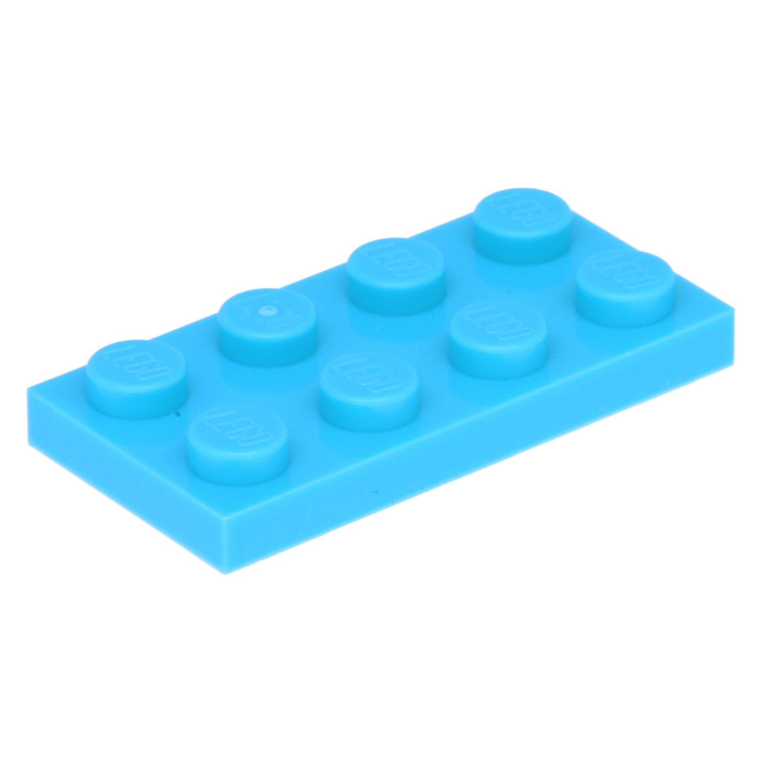 100 Stück LEGO Bauplatten im Format 2x4 Noppen, Azurblau (Medium Azure)