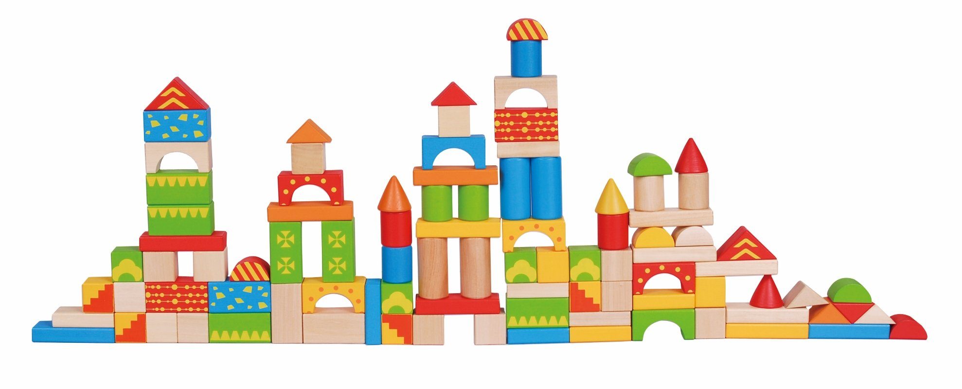 | Lieferumfang | 100 Holzbausteine in einer Aufbewahrungstrommel |