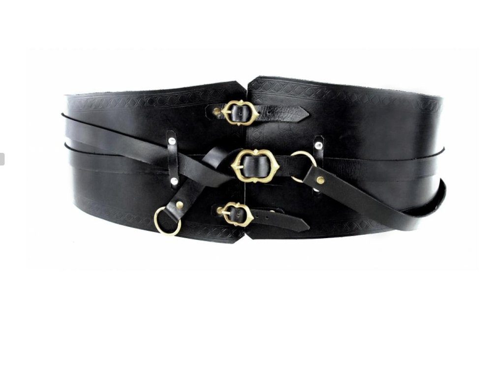 Ahoi ihr Landratten! Ihr wollt auf Kaperfahrt gehen und sucht als waschechte Piratin noch nach dem passenden Mieder-Gürtel? Mit diesem Miedergürtel aus Leder seid ihr genau richtig! Nicht nur über drei Schnallen verfügt dieser Gürtel, nein auch eure Pistolen und Entermesser könnt ihr praktischerweise an dem umlaufenden Riemen mit Ringenden befestigen.