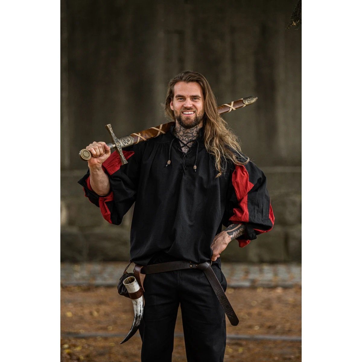 Lieferumfang: 1x Landsknecht Mittelalterhemd, schwarz/rot