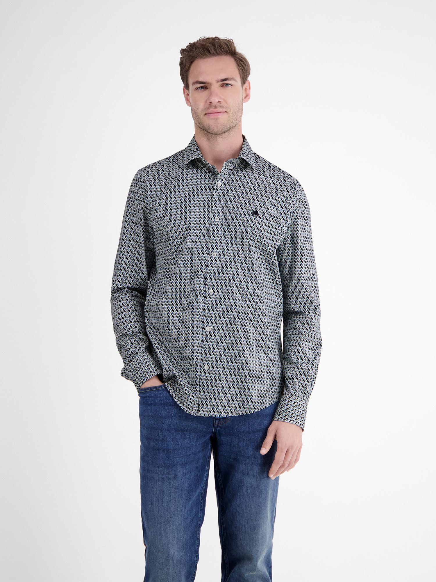 Materialzusammensetzung: 97% Baumwolle, 3% Elasthan Abschluss_Hemd: abgerundeter Saum Aermel: Langarm Aermellaenge: Langarm Kapuze: keine Kragen: Haifischkragen Material: 97% Baumwolle, 3% Elasthan Muster: gemustert Pflegehinweis: 30°C FEINWÄSCHE, NICHT BLEICHEN, NICHT IM TUMBLER TROCKNEN, NICHT HEISS BÜGELN, BEHANDLUNG MIT PERCHLORETHYLEN, NUR FEINWASCHMITTEL VERWENDEN, VON LINKS WASCHEN UND BÜGELN, DUNKLE FARBEN SEPARAT WASCHEN, SCHONWASCHGANG, Produkttyp Otto: Langarmhemd Tierischer Ursprung: Nein Verschluss: Knopfleiste Serie: LKZ10405_Hemd_langarm
