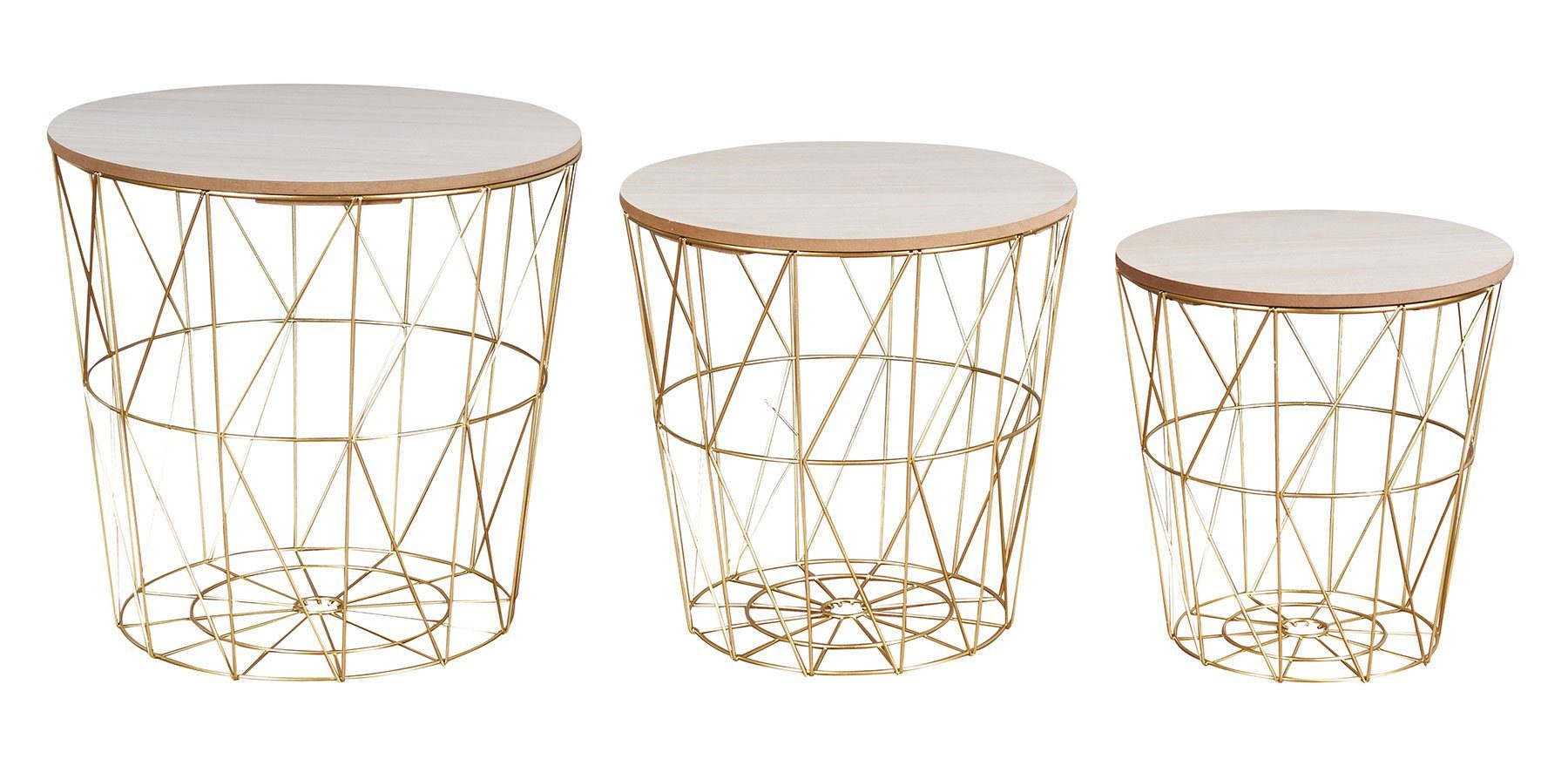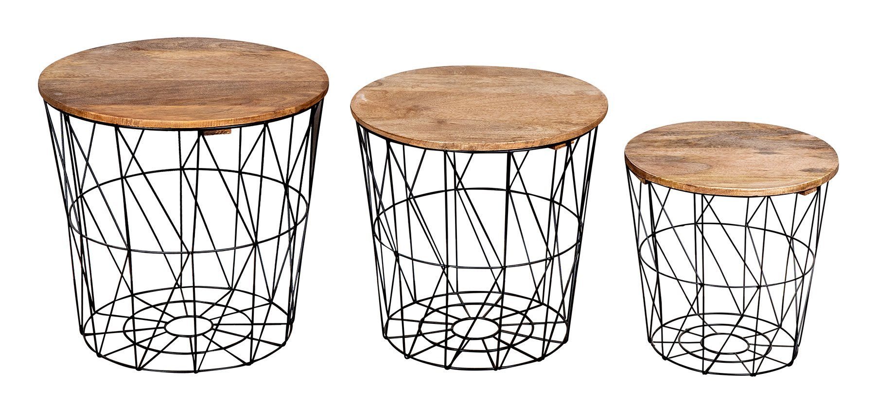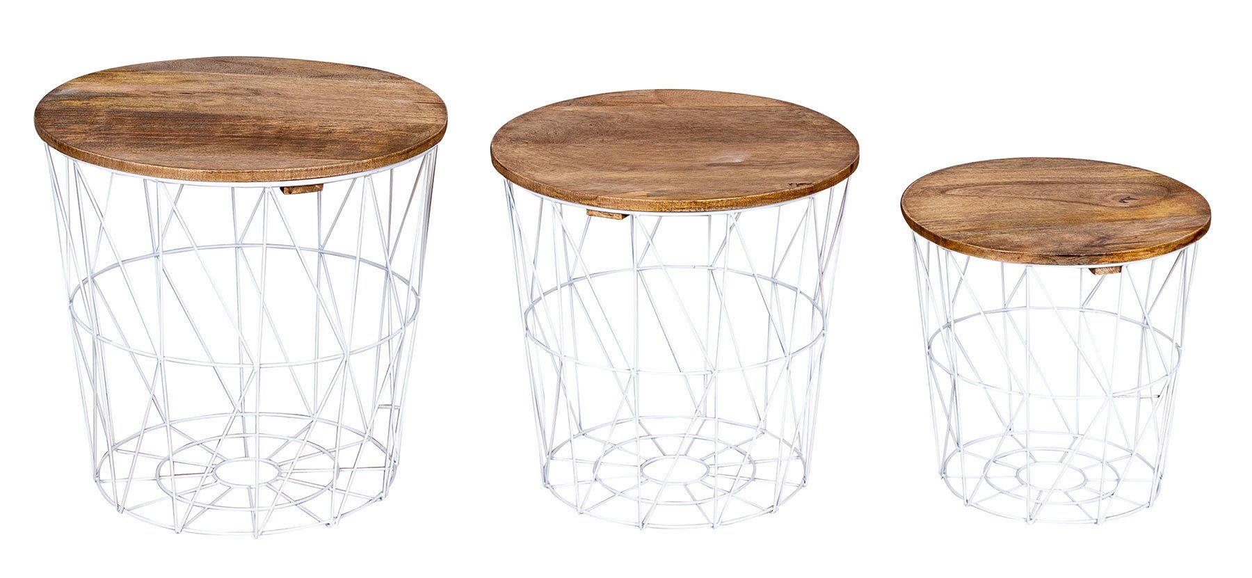 Das 3er Set Drahtkorb Beistelltische punktet neben seine Optik zusätzlich mit charmanter Stauraum-Funktion für individuelle Wohnwünsche. Deiner Kreativität sind keine Grenzen gesetzt. Du kannst diese angesagten Tische mit unterschiedlichen Einrichtungsstilen kombinieren.