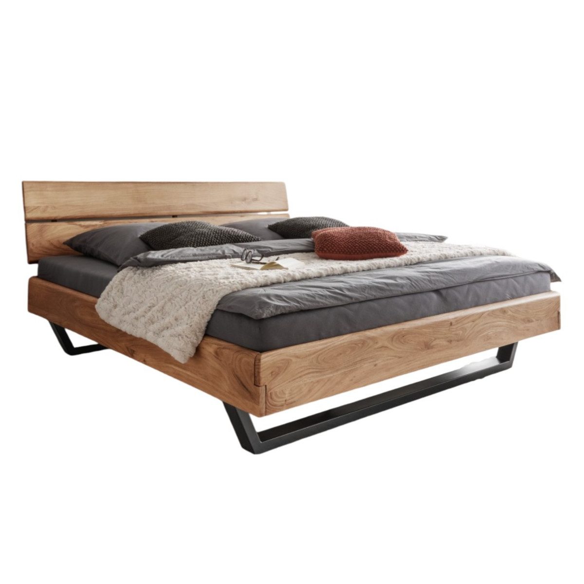 Das Bologna Bett besteht aus massiver Akazie, deren warme Farbgebung und einzigartige Maserung jedem Raum ein behagliches Ambiente verleihen. Eine klare Lackierung schützt die Oberfläche und macht sie pflegeleicht, während sie gleichzeitig die natürliche Struktur des Holzes betont. Das schwarze Metallgestell sorgt für Stabilität und setzt moderne Akzente – ideal für Liebhaber des Industrial- oder Loft-Stils.