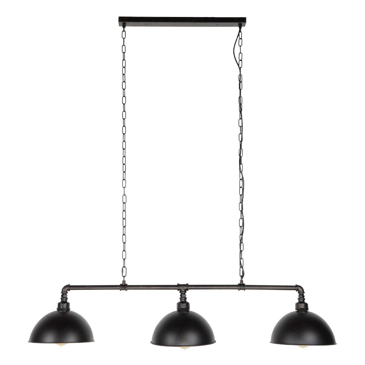 Die Pendelleuchte Clark besticht durch ihre rustikale und charmante Ausstrahlung. Die markanten Lampenschirme aus Metall mit jeweils 25 cm Durchmesser werden von schwarzen Vintage-Wasserrohren gehalten, die der Leuchte ein industrielles Flair verleihen. Eine rustikale Eisenkette ermöglicht eine Gesamthöhe von 150 cm, wodurch sich die 118 cm lange Leuchte ideal für Esstische oder große Kücheninseln eignet.