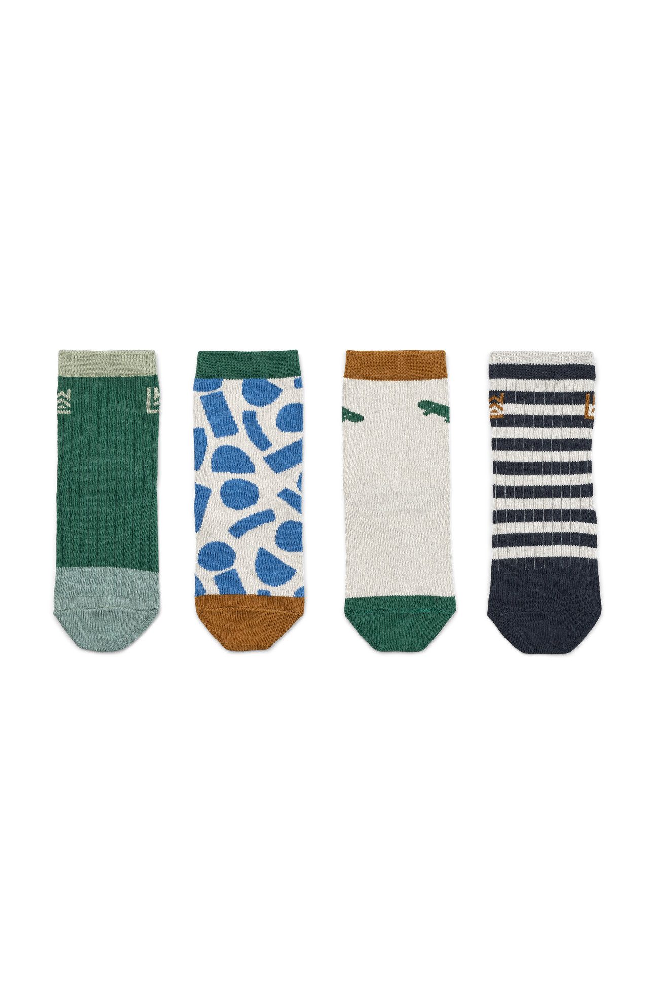 BAUMWOLLSOCKEN FÜR KINDER 4er- Set Die Silas Baumwollsocken sind superweich und dehnbar und so macht das Anziehen gleich viel mehr Spaß. Material: 80% Baumwolle, 17% Polyamid und 3% Elasthan - Bei oder unter 30 °C waschen - Krimpt tot 5% - Trocknergeeignet, nur mittlere Temperatur - Bei niedriger Temperatur bügeln - Nicht bleichen