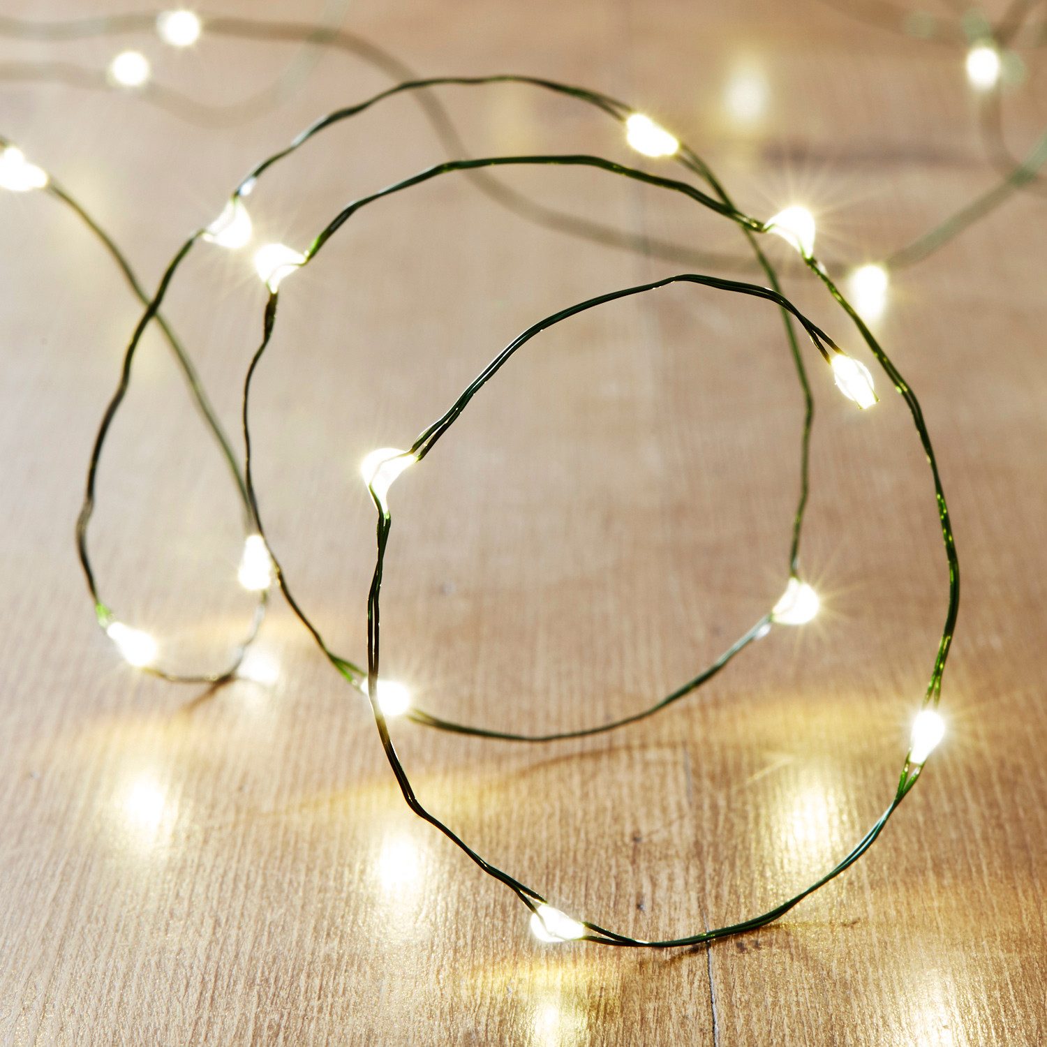 Perfekt um Weihnachtskränze oder Girlanden zum Funkeln zu bringen. Die 50 warmweißen Micro LEDs sind auf grünem Draht verteilt, sodass sich diese Lichterkette super eignet um sie in Grünzeug einzuarbeiten.