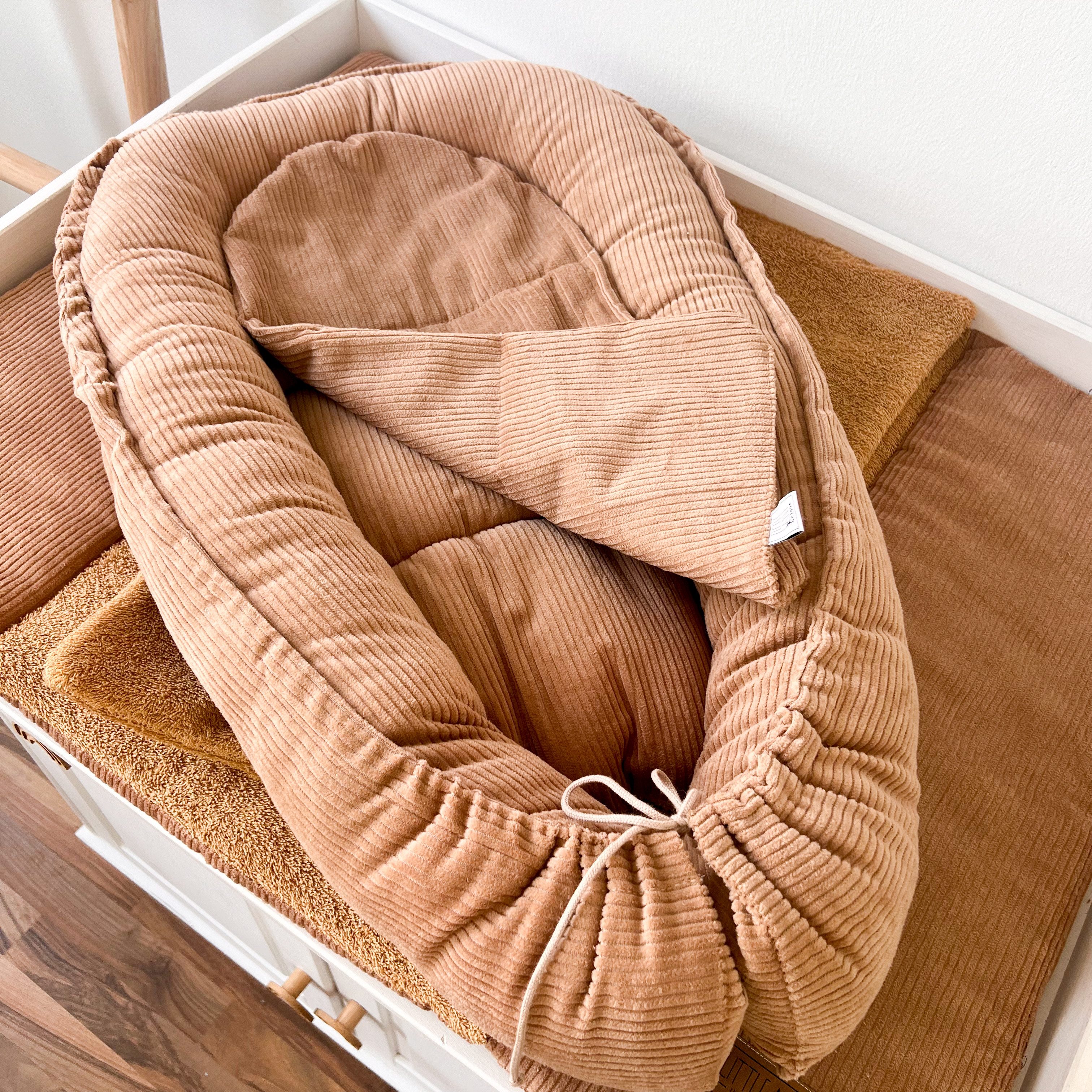 Nur unter Aufsicht zu verwenden und die Füße liegen immer in Richtung der Kordel. -Bitte achte darauf, dass dein Baby nie unbeaufsichtigt im Nestchen liegt und darin einschläft. Das Nestchen ist kein Bettchen.