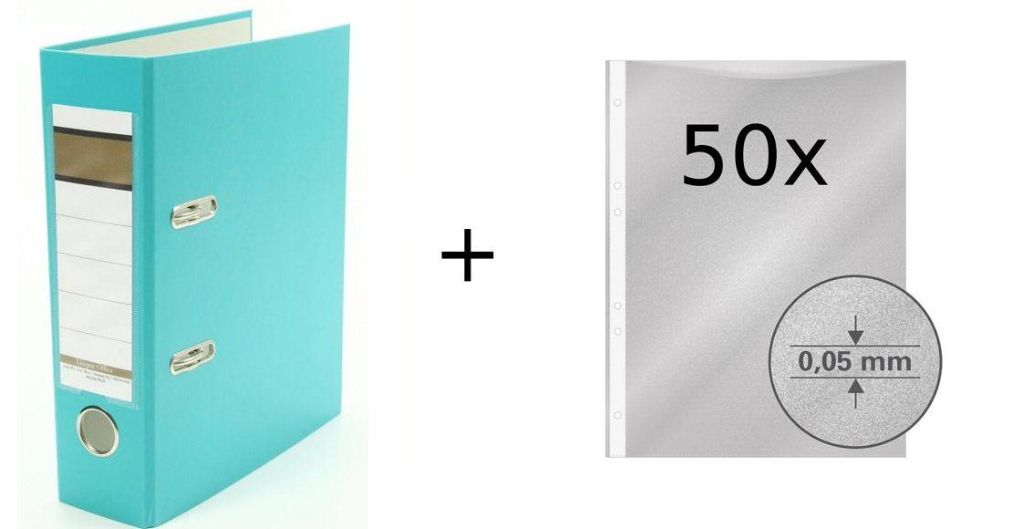 Aktenordner Ordner / DIN A5 / 75mm / Farbe: türkis + 50 Prospekthüllen