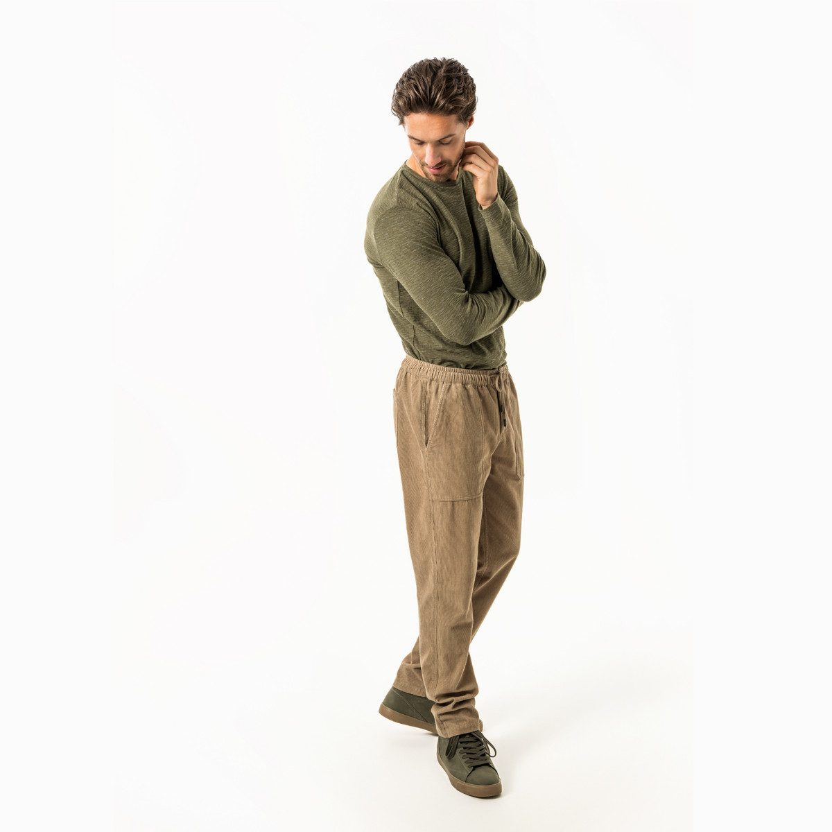 Herren Cargo Cordhose "YUSTIN": YUSTIN Cordhose vereint stilvolle Details mit höchstem Tragekomfort. Aus 100 % Baumwolle gefertigt, bietet sie ein angenehmes Hautgefühl. Aufgesetzte Taschen und ein elastischer Cordel im Bund sorgen für Funktionalität und Flexibilität. Besondere Akzente setzen die Metallreißverschlüsse, die hochwertigen Corozo Knöpfe sowie die mit Metall verzierten Cordelenden. Die charmante Stickerei verleiht der Hose eine individuelle Note. GOTS- und VEGAN-zertifiziert, kombiniert diese Casualhose Nachhaltigkeit und Stil auf perfekte Weise.