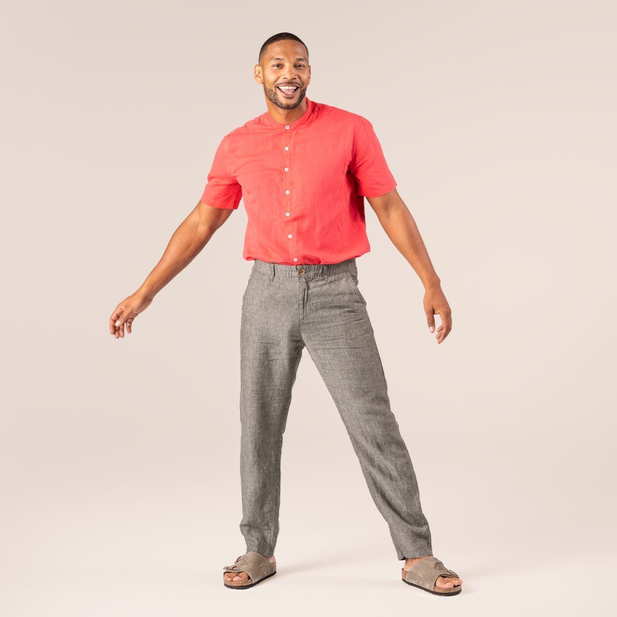 Herren Leinen Hose "OLEG": Diese komfortable Herren-Hose mit Reißverschluss und Knopf ist genau das Richtige für warme Tage. Aus reinem Leinen gewebt, fällt sie leicht und luftig und sitzt dank ihrer modischen Schnittform ideal. Der Bicolour-Stoff im leicht melierten Farbton ist auch in ungefärbter Naturfarbe ein wahrer Hingucker. Der elastische Bund mit Gürtelschlaufen sorgt für eine bequeme Passform und Seitentaschen sowie innenliegende Gesäßtaschen bieten ausreichend Stauraum. Geben Sie Ihrem Sommer-Outfit den letzten Schliff mit dieser stylischen, vielseitig kombinierbaren Leinen-Hose!