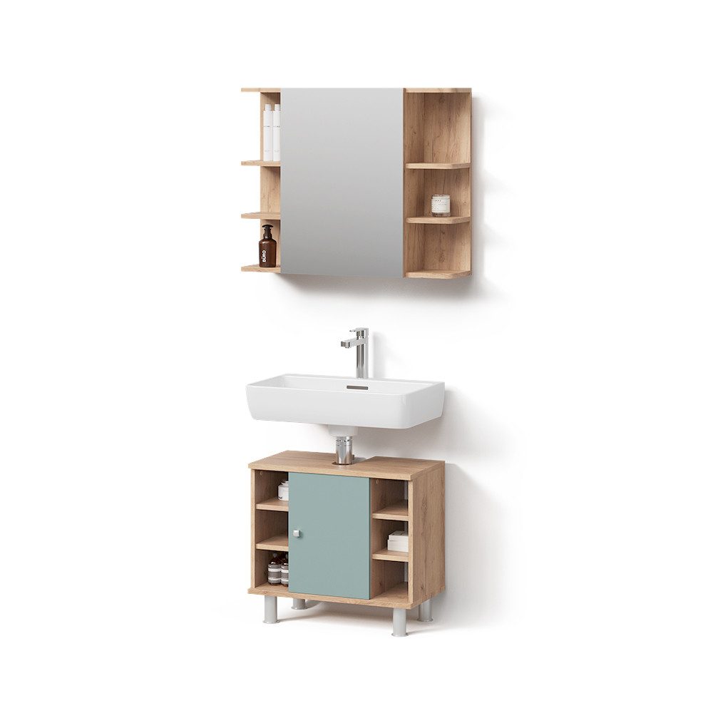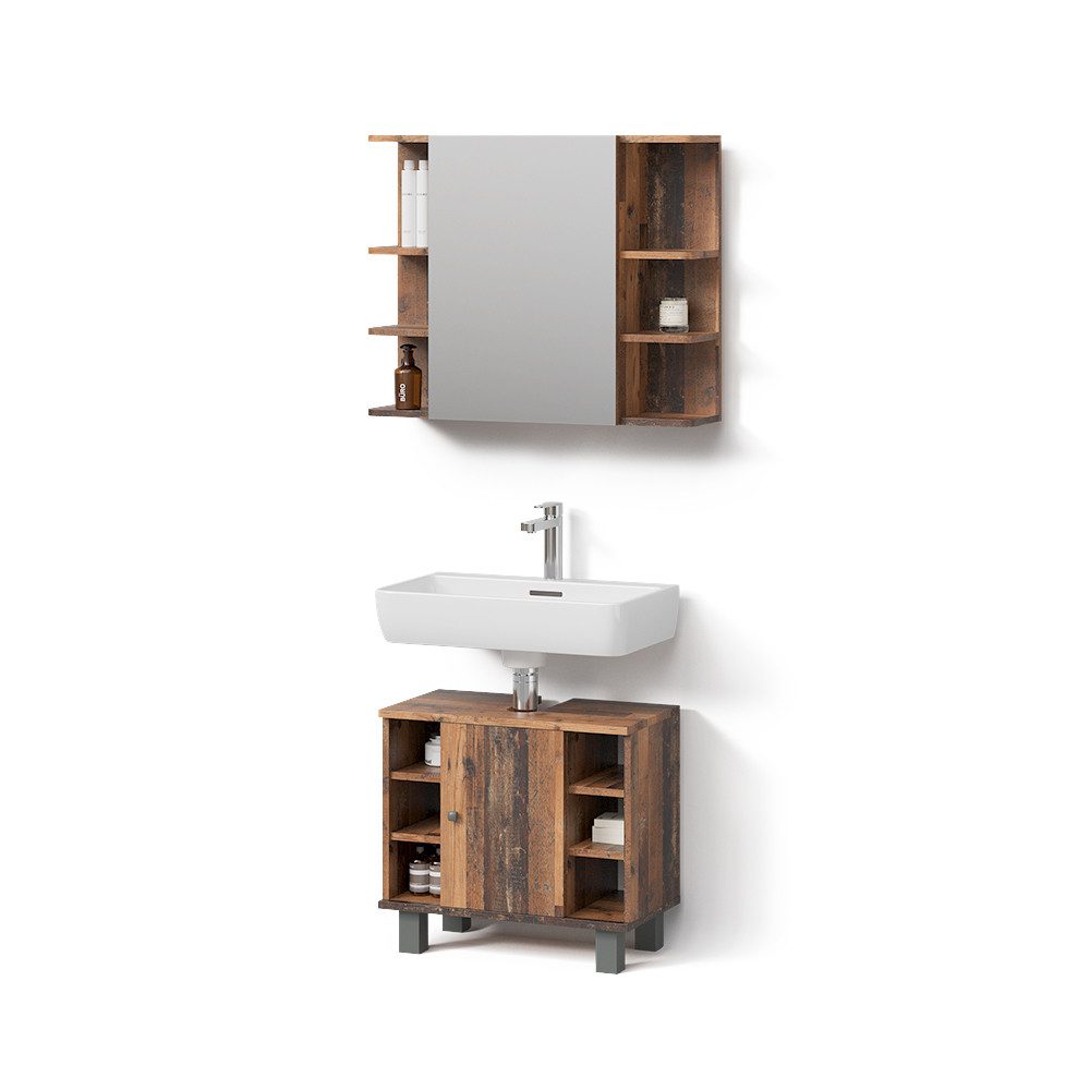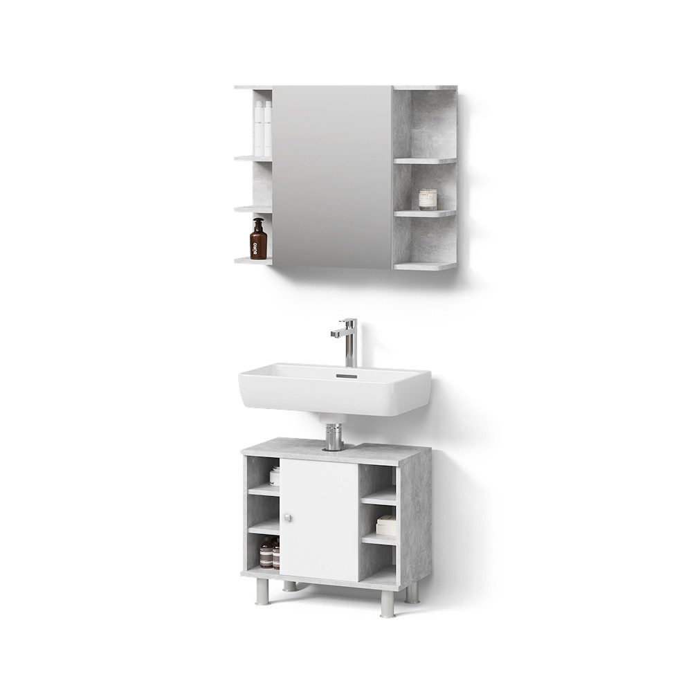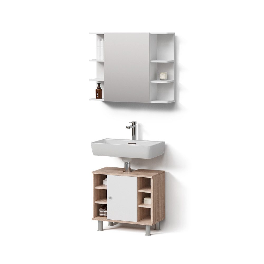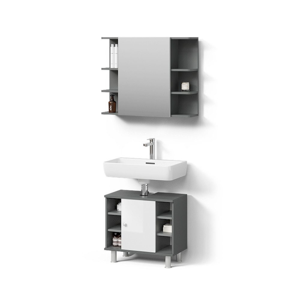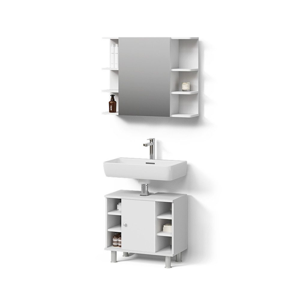LIEFERUMFANG: Badspiegelschrank, Waschbeckenunterschrank, (Dekoration nicht im Lieferumfang enthalten), Montageanleitung, Montagematerial.#24736