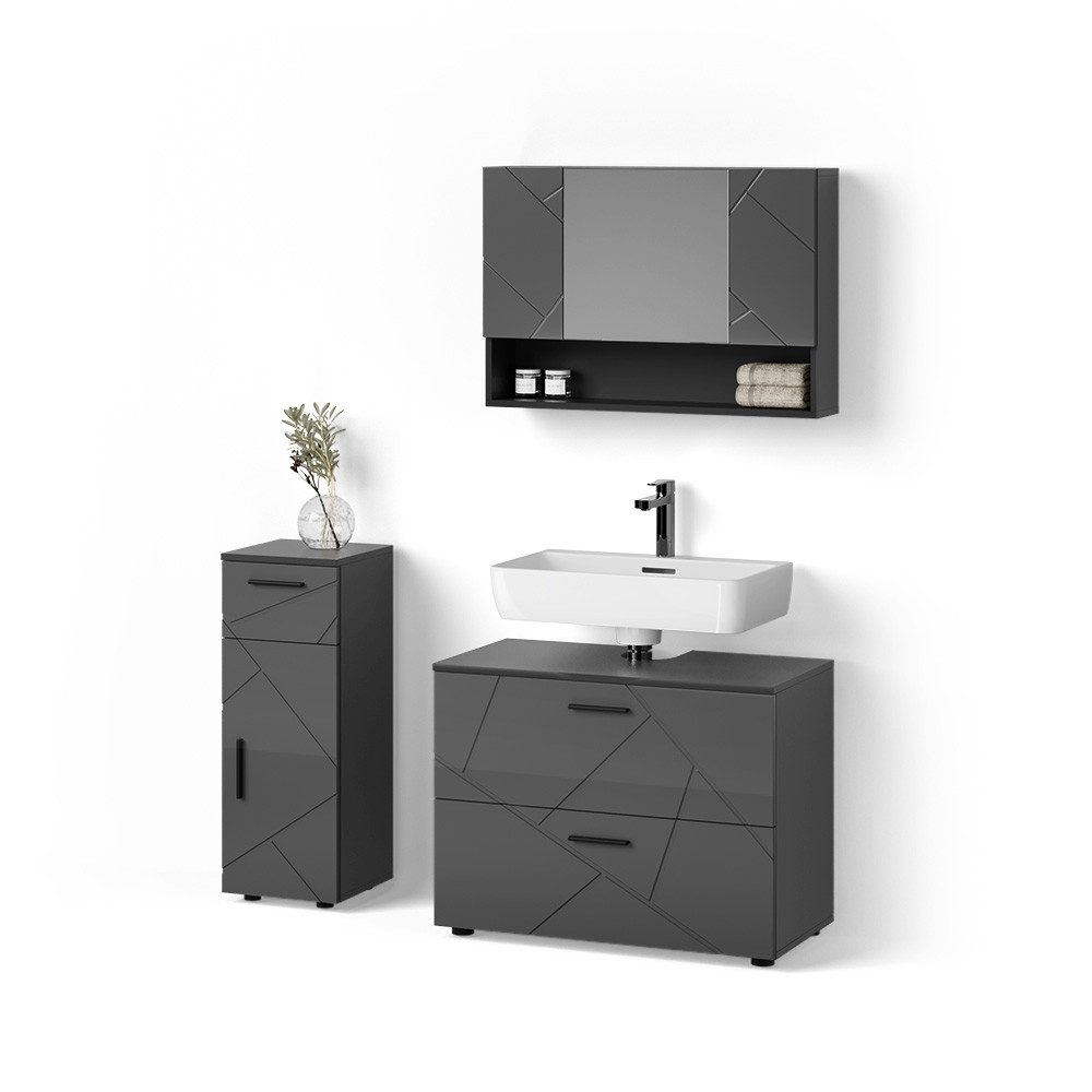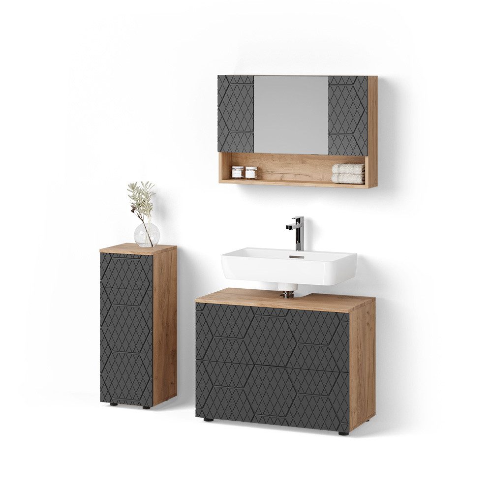 LIEFERUMFANG: Badspiegelschrank, Waschbeckenunterschrank, Midischrank, (Dekoration nicht im Lieferumfang enthalten), Montageanleitung, Montagematerial#25097