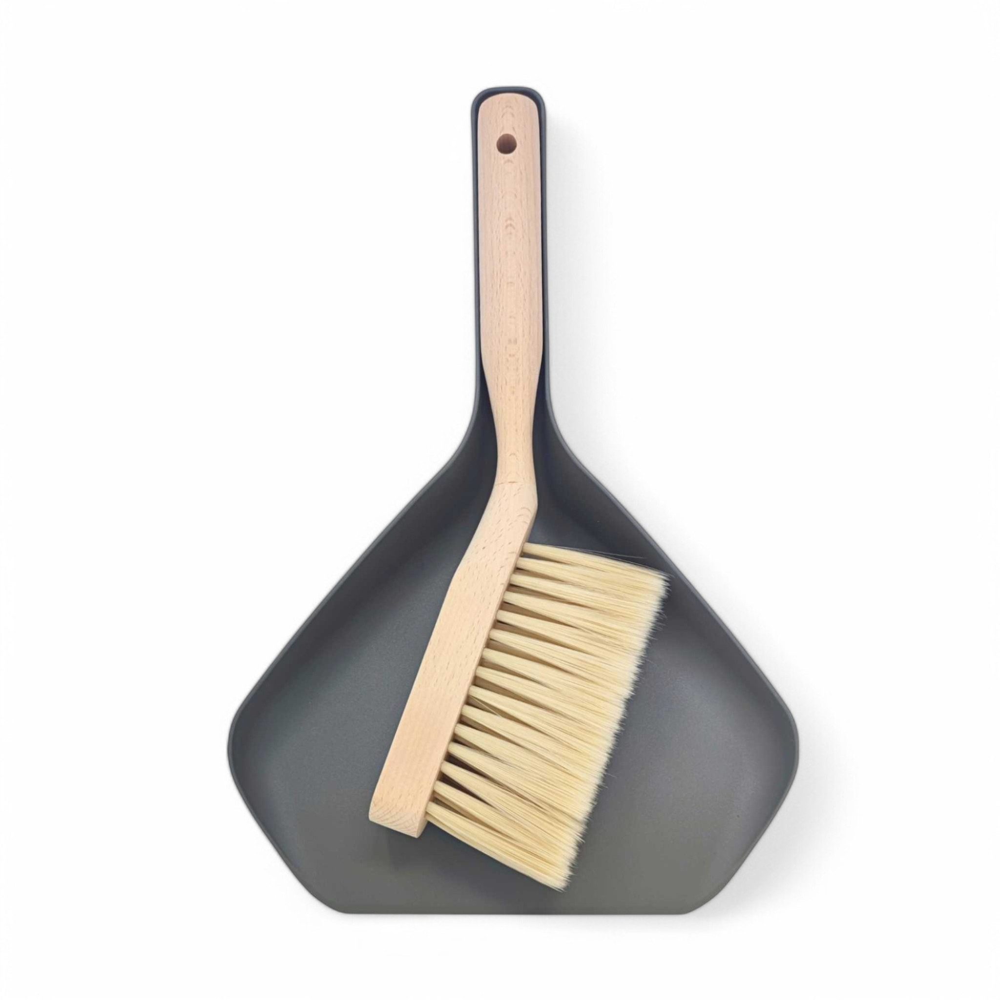 Recycelte Materialien: Handfeger aus Birkenholz und Kehrschaufel aus recyceltem Kunststoff – nachhaltig und robust verarbeitet.