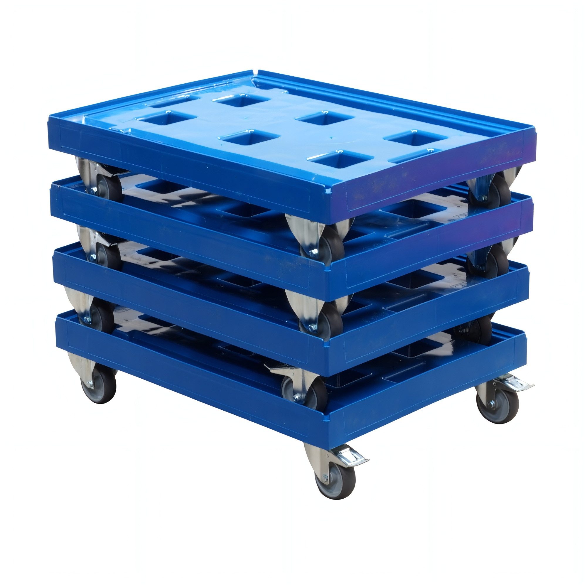 Ideal für Bäckereien, Konditoreien, Lebensmittelbetriebe, Industrie und Lagerlogistik. Unterstützt den sicheren Transport von Kunststoffkisten und anderen Behältern auf ebenen Böden.