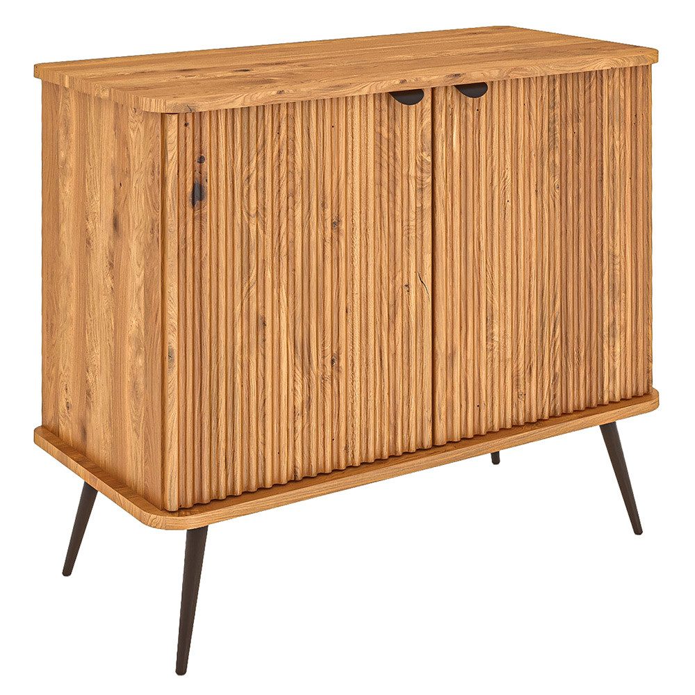Diese Kommode bringt Wärme und Eleganz in dein Zuhause. Ausgestattet mit einer Softclose-Funktion, ermöglichen die Schubladen ein leises und sanftes Schließen, während die gerillte Front das Design stilvoll abrundet.