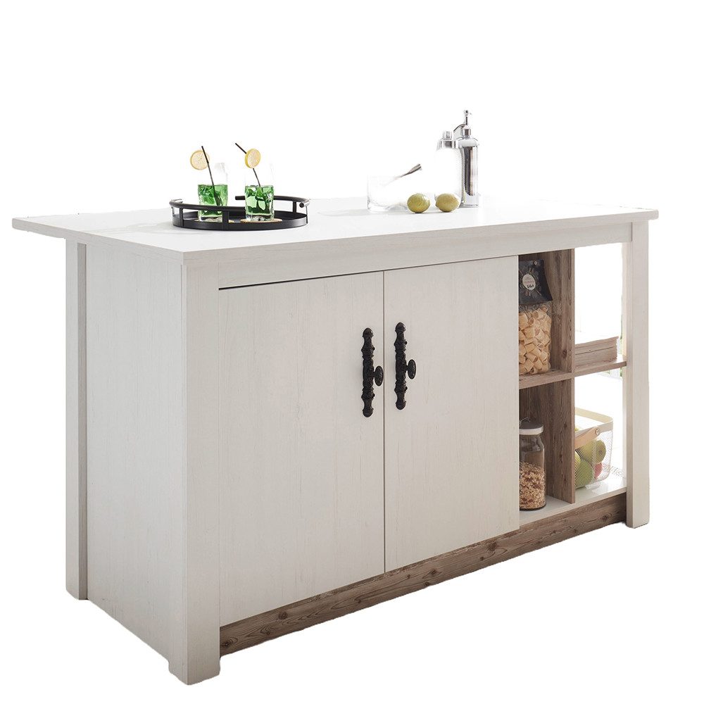 Diese hochwertige Küchentheke verbindet modernes Landhausdesign mit praktischer Funktionalität und wird im Handumdrehen zum Mittelpunkt deiner Küche. Hinter zwei Türen mit je einem verstellbaren Einlegeboden findest du reichlich Stauraum für Geschirr, Vorräte oder Küchenzubehör. Die vier offen gestalteten Fächer, zwei davon seitlich zugänglich, bieten zusätzlichen Platz und setzen dekorative Akzente. Dank höhenverstellbarem Sockel lässt sich die Theke optimal an deinen Raum anpassen. Mit großzügigen Maßen bietet sie gleichzeitig eine komfortable Arbeits- und Ablagefläche.