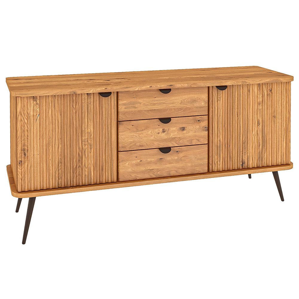 Dieses Sideboard bringt Wärme und Eleganz in dein Zuhause. Ausgestattet mit einer Softclose-Funktion, ermöglichen die Schubladen ein leises und sanftes Schließen, während die gerillte Front das Design stilvoll abrundet.