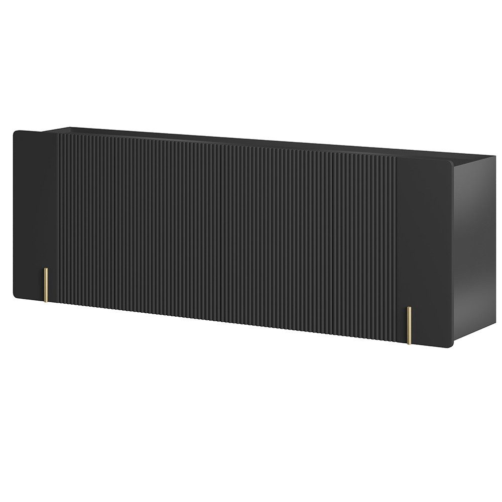 Dieses elegante Sideboard vereint minimalistisches Design mit ausdrucksstarker Präsenz. Die tiefschwarze Rillenfront verleiht dem Möbelstück eine moderne Struktur und schafft einen edlen Blickfang im Raum. Dank der grifflosen Türen wirkt die Front besonders klar und harmonisch, während das wandhängende Design für eine leichte, schwebende Optik sorgt. Hinter den vier Türen verbirgt sich großzügiger Stauraum für Geschirr, Gläser, Textilien oder Alltagsgegenstände, die dezent verborgen bleiben. Ein Sideboard, das Funktionalität und zeitlose Eleganz auf ein neues Niveau hebt.