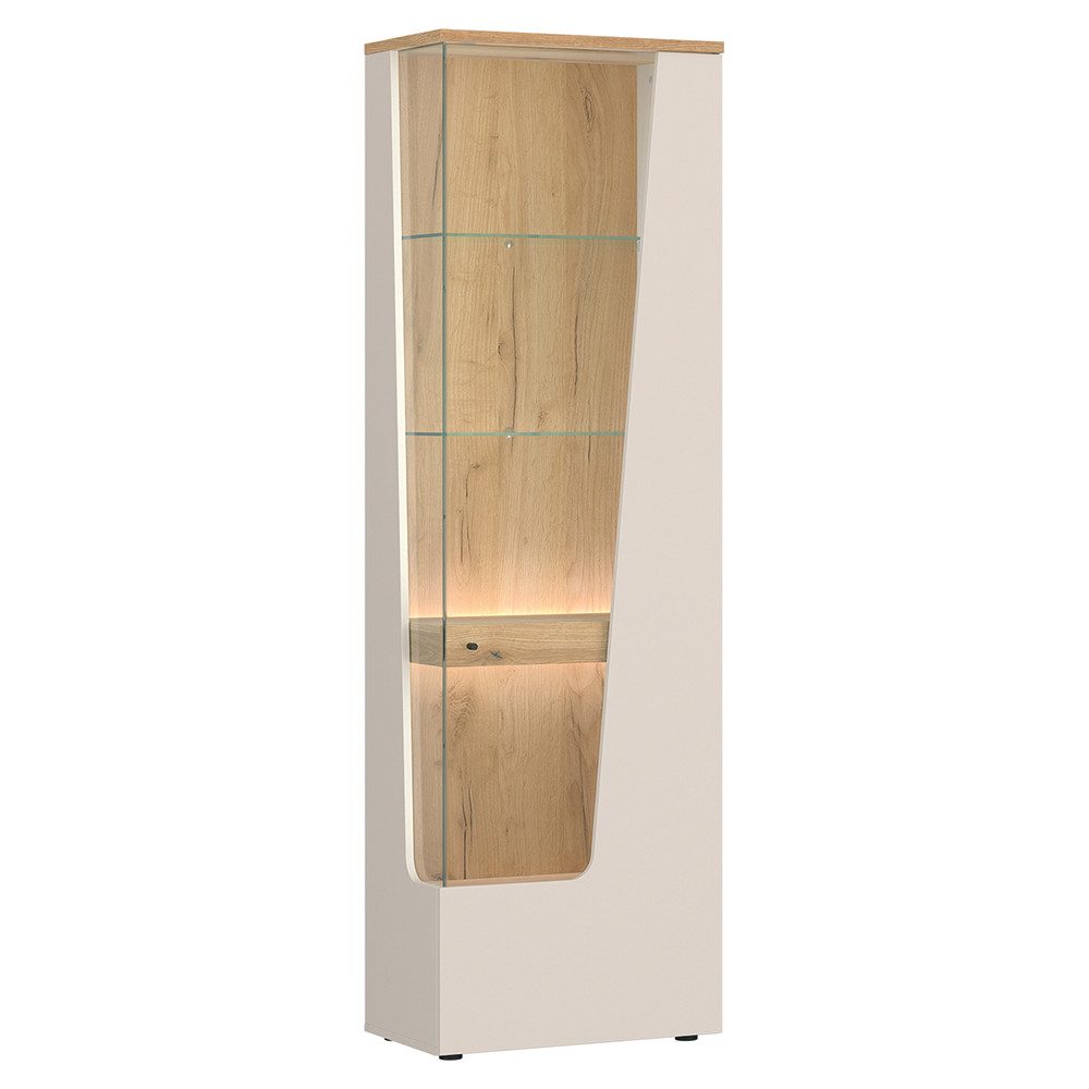 Elegant, hell und modern – diese Vitrine in Kaschmir und Eiche Dekor bringt stilvolle Wärme in dein Zuhause.