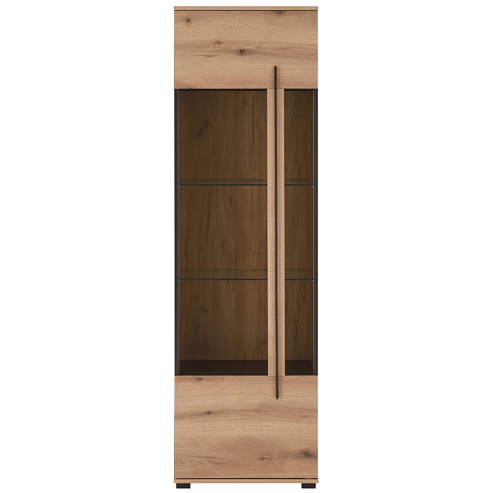 Diese Vitrine bringt genau das in dein Zuhause, was man sich wünscht: einen natürlichen Holzlook, schlichtes Design und Platz für schöne Dinge. Der graue Glaseinsatz sorgt für eine moderne Note, ohne aufdringlich zu wirken. Egal ob du Gläser, Deko oder Lieblingsstücke zeigen willst – hier passt alles rein. Und durch die schlanke Form findet sie auch in kleineren Räumen ihren Platz. Klingt gut? Dann hol dir jetzt ein Stück Gemütlichkeit nach Hause.