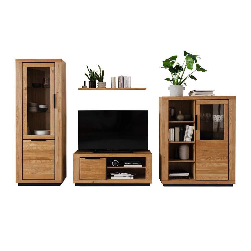 Die massiven, geölten Fronten kombiniert mit einem Korpus in Wildeiche Nachbildung verleihen jedem Raum Wärme und Eleganz. Metallgriffe unterstreichen das zeitlose Design, während die individuell kombinierbaren Elemente dir maximale Flexibilität bieten.