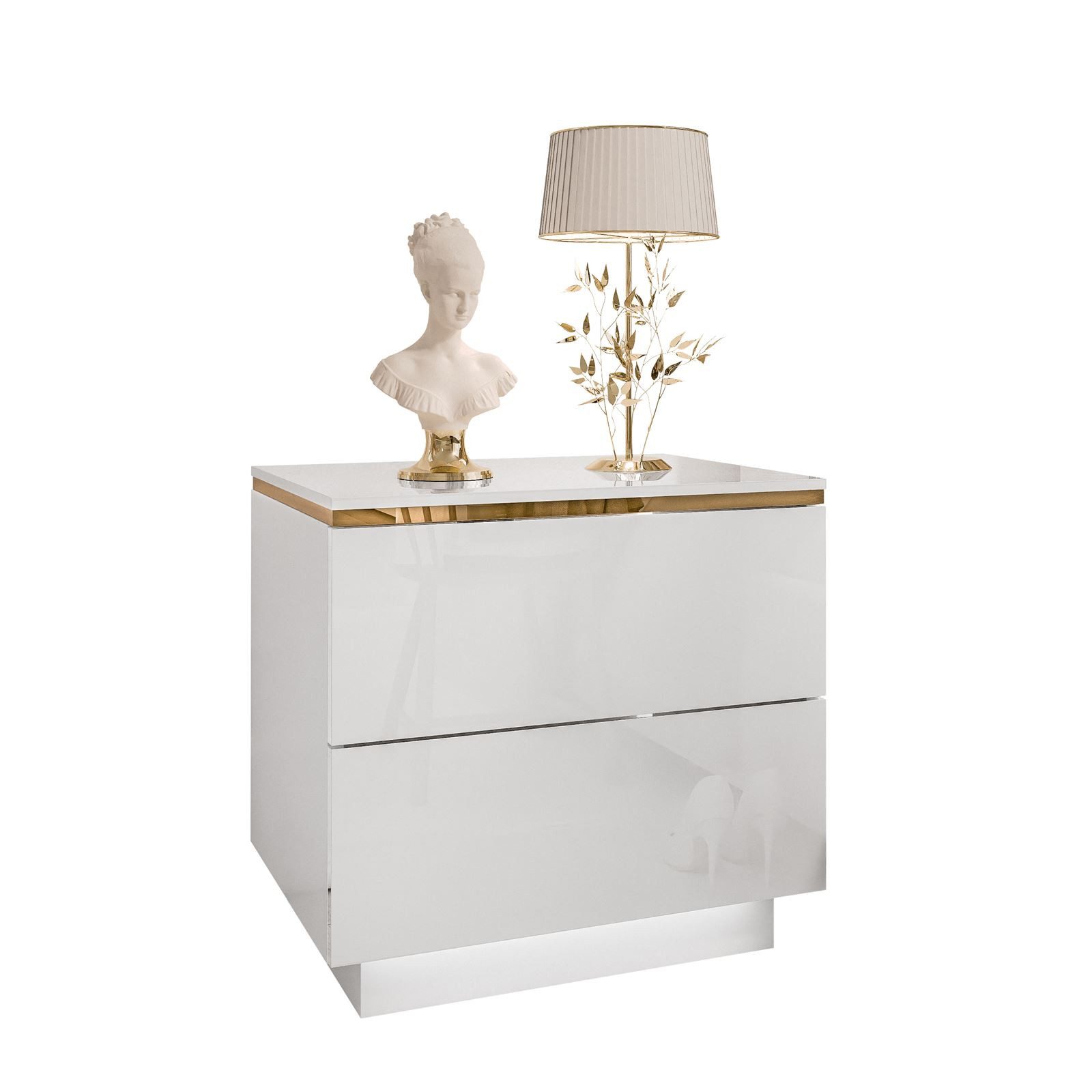 Der Nachttisch AURORA II in Weiß Hochglanz ist eine außergewöhnliche Kombination aus moderner Eleganz und minimalistischem Design. Seine glänzende Oberfläche verleiht dem Raum Frische und Leichtigkeit und schafft eine Atmosphäre voller Licht und Weite. Er begeistert durch seine Schlichtheit und zeitlosen Stil und bringt einen Hauch von Luxus und Klasse ins Schlafzimmer.