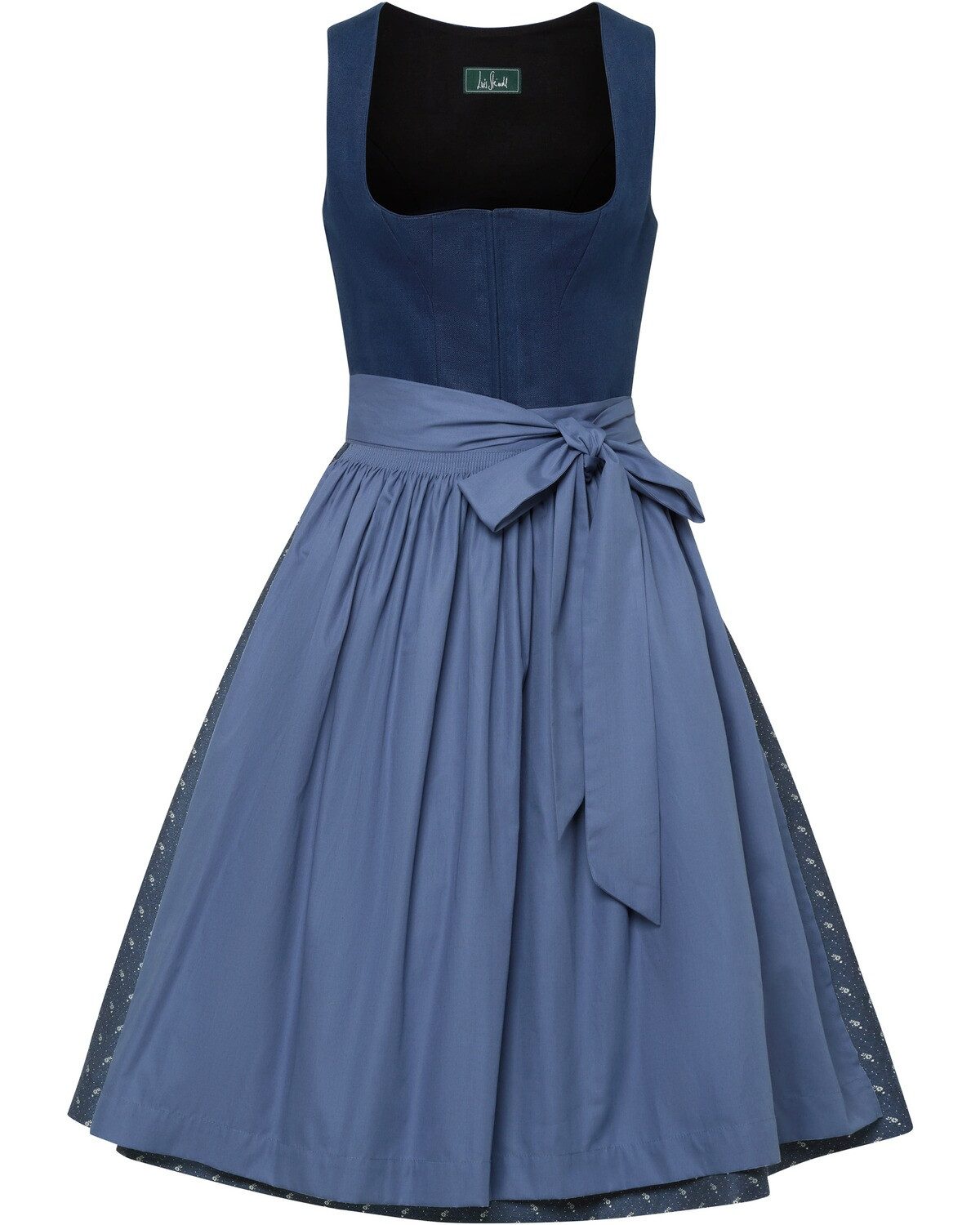 Elegantes Design aus Leinen Das Midi-Dirndl von Luis Steindl überzeugt durch sein ansprechendes Design, das mit einem Mieder aus reinem Leinen gefertigt ist. Der Balkonett-Ausschnitt verleiht dem Dirndl eine feminine Note, während die verdeckten Miederhaken in der Mitte des Mieders für eine saubere Optik sorgt. Der Rockteil ist mit einem floralen Jacquardmuster gestaltet, das dem Dirndl eine stilvolle und zugleich verspielte Ausstrahlung verleiht. Mit einer Midi-Länge bietet das Dirndl eine schmeichelhafte Silhouette, die ideal für verschiedene festliche Anlässe ist. Praktische Details und harmonische Akzente Zusätzlich verfügt das Dirndl über zwei Rocktaschen in den Seitennähten, die praktischen Stauraum für kleine Utensilien bieten, ohne das Gesamtbild zu stören. Die farblich abgestimmte Schürze mit einer eleganten Bindeschleife rundet das Design ab und setzt einen harmonischen Akzent. Dieses Midi-Dirndl vereint traditionelle Elemente mit modernen Details und ist somit eine hervorragende Wahl für Frauen, die Wert auf Qualität und Stil legen. Oberstoff: 100% Leinen; Futter: 100% Baumwolle; Sonstige Materialien: Rock, 60% Polyester, 40% Viskose, Schürze, 100% Baumwolle,