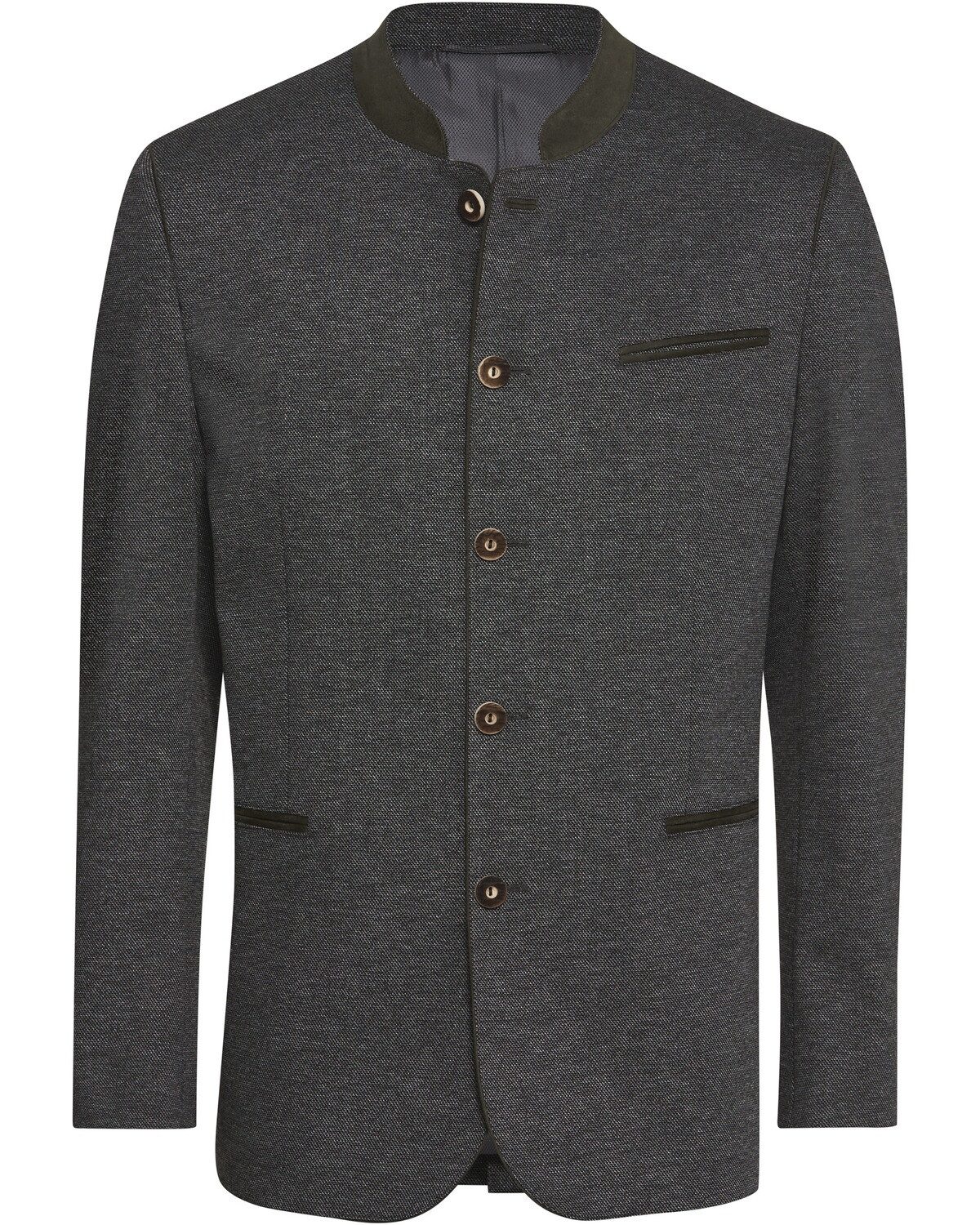 Traditionelle Eleganz mit modernem Twist Der regulär geschnittene Janker in Tegernseer Form überzeugt durch seinen strukturierten Materialmix. Dieses Kleidungsstück vereint klassische Elemente mit zeitgemäßen Details. Der Stehkragen und die drei Paspeltaschen aus Kontraststoff unterstreichen die elegante Optik. Die Knöpfe in Hirschhornoptik verleihen dem Design subtile Akzente. Komfort und Funktionalität im Detail Das leichte Futter bietet ein angenehmes Tragegefühl und sorgt für Komfort bei jeder Gelegenheit. Eine Kellerfalte mit geknöpftem Riegel auf der Rückseite ergänzt die funktionalen Eigenschaften. Diese Details machen den Janker zu einem vielseitigen Begleiter für verschiedene Anlässe. Ein vielseitiges Kleidungsstück für den stilbewussten Mann Der Janker passt zu unterschiedlichen Outfits und eignet sich für diverse Anlässe. Ob im Büro oder bei einem formellen Anlass, dieses Stück bietet Flexibilität und Stil. Der traditionelle Look wird durch moderne Akzente aufgewertet, was ihn zu einer zeitlosen Ergänzung der Garderobe macht. Oberstoff: 43% Polyester, 33% Polyamid, 18% Viskose, 6% Elasthan; Futter: 100% Polyester
