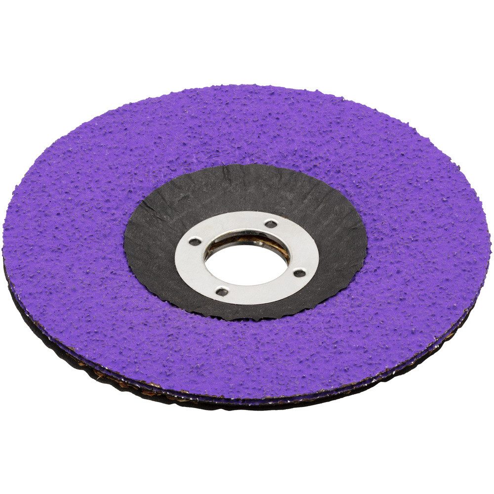 Dieser Kompaktschleifteller mit seiner doppelten Lage selbstschärfendem Ceramic-Korn-Schleifleinen schließt mit seiner beeindruckend hohen und sehr konstanten Abtragsleistung über die gesamte Lebensdauer hinweg die Lücke zwischen Schleiflamellenteller und Fiberscheibe. Die Vorteile von drei konventionellen Werkzeugen kombiniert in einem Schleifteller: die Aggressivität einer Fiberscheibe, die gleichmäßige Abnutzung einer Schruppscheibe und die Ausdauer einer hochwertigen Fächerschleifscheibe. Zusätzlich ist dank eines integrierten glasfaserverstärkten Stütztellers kein zusätzlicher Stützteller nötig - das spart Kosten und verschafft deutliche Zeitvorteile beim Werkzeugwechsel. Die Bohrung des Purple Grain Double mit tiefer Kröpfungszone erlaubt ein flaches Arbeiten. So erreicht er auch schwer zugängliche Bereiche und bietet damit mehr Einsatzmöglichkeiten als ein konventionelles Werkzeug