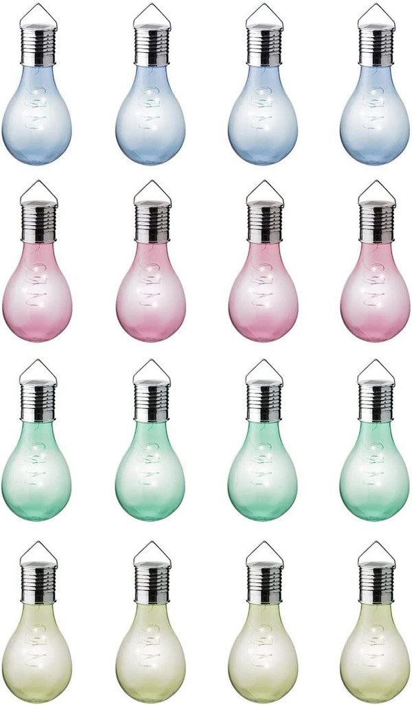 Lumineo LED Solarleuchte Solar Birne plastik Dauerbetrieb 4 Farben Ø8cm H.14cm 16 Stück