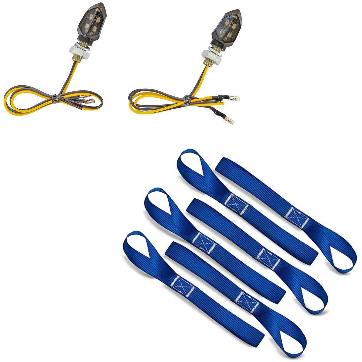 Halter Set: LED Blinker Motorrad KP8 ECE Paar vorne-hinten get. # mit Zurrsch