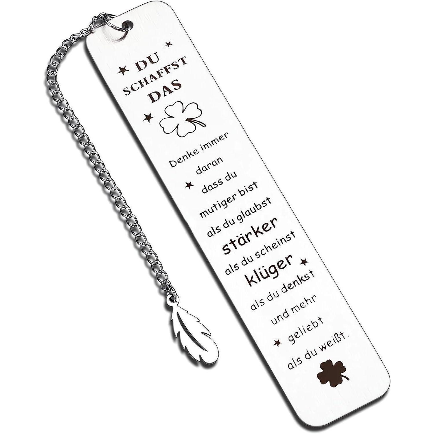 Dieses Mutmacher-Lesezeichen begleitet dich nicht nur durch Seiten, sondern durch Lebensabschnitte. Das Edelstahl-Design fühlt sich hochwertig an, die Gravur schenkt Mut, und die Rückseite trägt eine zusätzliche Botschaft, die dich antreibt, wenn du vor einer Herausforderung stehst. Ob Lehrer, Student oder Kollege – als Glücksbringer, Prüfungsgeschenk, Ruhestand-Geschenk oder Weihnachts- und Geburtstagsgeschenk passt es perfekt zu vielen Anlässen. Dank der kompakten Größe passt es in jede Handtasche oder jeden Buchrücken und begleitet dich leise, aber eindrucksvoll. Jetzt entdecken und mit diesem Lesezeichen jeden Lesemoment zu einem mutigen Schritt machen – Du Schaffst Das!