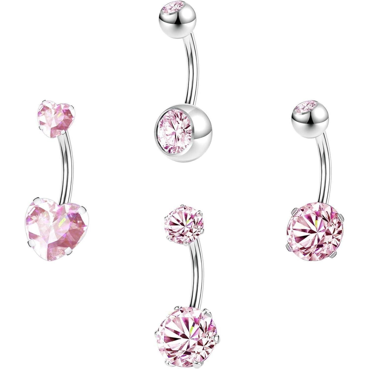 Das Set enthält 4 Bauchnabelpiercings in verschiedenen Stilen, darunter runde und herzförmige Zirkonia-Steine. Jedes Stück ist sorgfältig aus hypoallergenem Edelstahl gefertigt, um Hautirritationen zu vermeiden. Die strahlenden Strasssteine verleihen Ihren Outfits einen Hauch von Glamour, während das vielseitige Design perfekt zu Ihrer Alltagskleidung, Badeanzügen oder Club-Outfits passt.