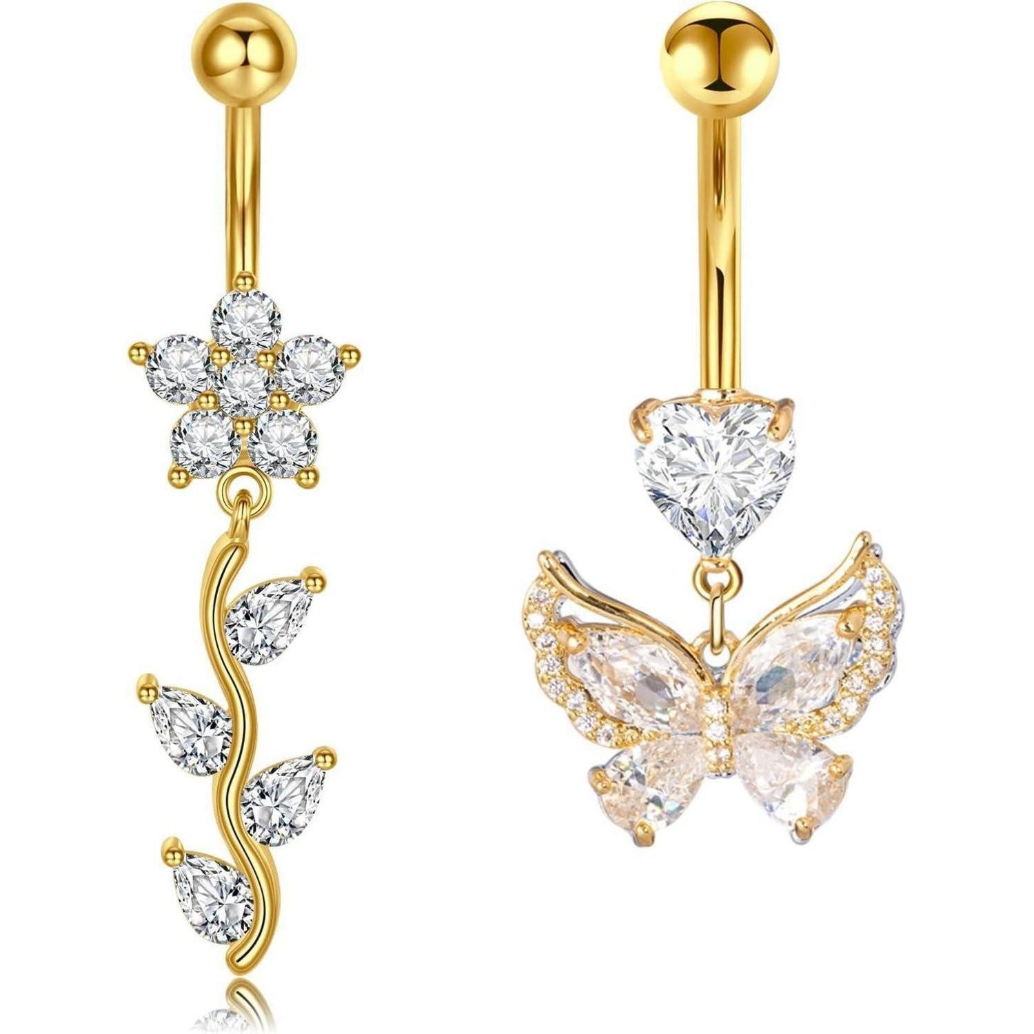 Stell dir vor: Du setzt dieses Bauchnabelpiercing an und dein Look erhält eine begeisternde Leuchtkraft. Das Gold-2 Stk 02 Set kommt mit zwei Piercing-Steckern aus Edelstahl in edlem Goldton, jeweils 1,6 mm Stärke (14G) und 10 mm Stablänge. Der tanzende Schmetterling-Anhänger begleitet von einem zarten Herz-Design macht dein Bauchpiercing zu einem eleganten Alltags- und Festival-Highlight – perfekt abgestimmt auf deinen Stil, egal ob Yoga-Kurs, Poolparty oder Shopping-Straßenbahnen in der City.