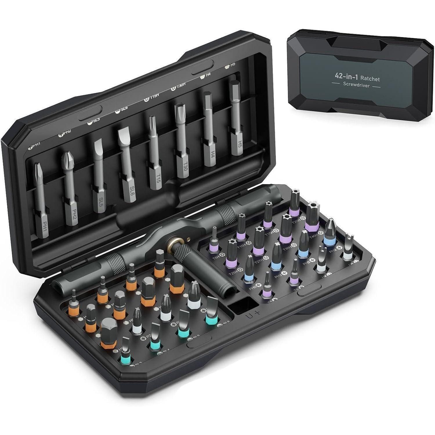 Stell dir vor: Du bist der Held jeder Werkstatt – kompakt, leistungsstark und bereit für jede Aufgabe. Der Knarrenkasten 42in1 Multibit Magnet Ratschenschlüssel in Schwarz vereint Tragbarkeit, Komfort und maximale Vielseitigkeit in einem einzigen, durchdachten Werkzeug. Der Griff ist mit einem starken Magneten ausgestattet, der Bits sicher hält, der sechseckige Kopf sitzt fest und der integrierte Magnet sorgt dafür, dass der Kopf nicht mehr verloren geht – perfekt, um schnell loslegen zu können. Mit seiner robusten Schale und dem modernen Schwarzton ist dieses Set nicht nur funktional, sondern auch ein stilvoller Begleiter jeder Reparatur – ideal als Geschenk der Wahl.