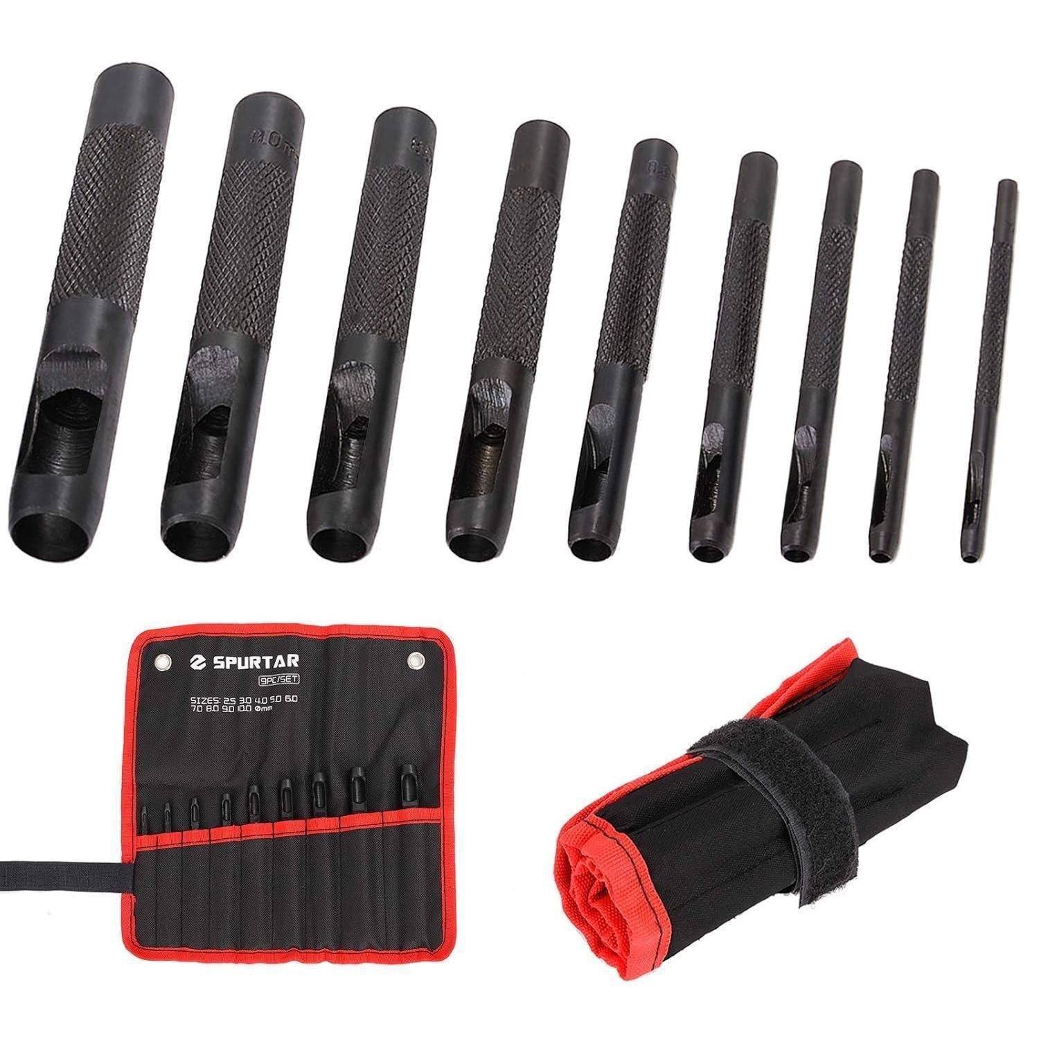 Stell dir vor, du arbeitest mit dem Spurtar 9 Stück Locheisen Satz 2,5-10mm Lochstanzer Leder Stanzwerkzeug Set Gehärtetem Stahl zum Rund Lochzange für Leder - Ideal für Profi & DIY Hobbyist - Schwarz Schwarz 9 Stk. und deine Projekte laufen wie geschmiert. Hochwertig, schwarz und bereit für jeden DIY- oder Profi-Einsatz – perfekt, um deine Werkstatt zu verlängern und deine