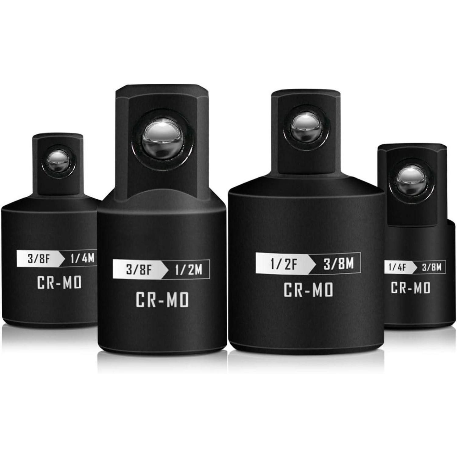 Stell dir vor, du arbeitest an der Werkbank oder auf der Baustelle: Dein Schlagschrauber läuft ruhig, die Verbindung sitzt perfekt und du sparst wertvolle Zeit beim Wechseln der Adapter. Dieses Set erfüllt den ANSI-Standard und bietet dir Sicherheit durch eine zuverlässige 1-Jahres-Garantie sowie einen 24/7-Service. Es ist der ideale Begleiter für den Heimwerker- oder Profi-Alltag und macht aus jeder Schraubarbeit eine reibungslose, effiziente Mission. Als Teil der Mr.wintek Kraft-Stecknuss-Adapter-Familie findest du hier den 4-teiligen Impact Socket Adapter, ideal für 1/4", 3/8" und 1/2" SAE-Antriebe – Cr-Mo-Stahl, schwarz beschichtet und perfekt kompaktn.