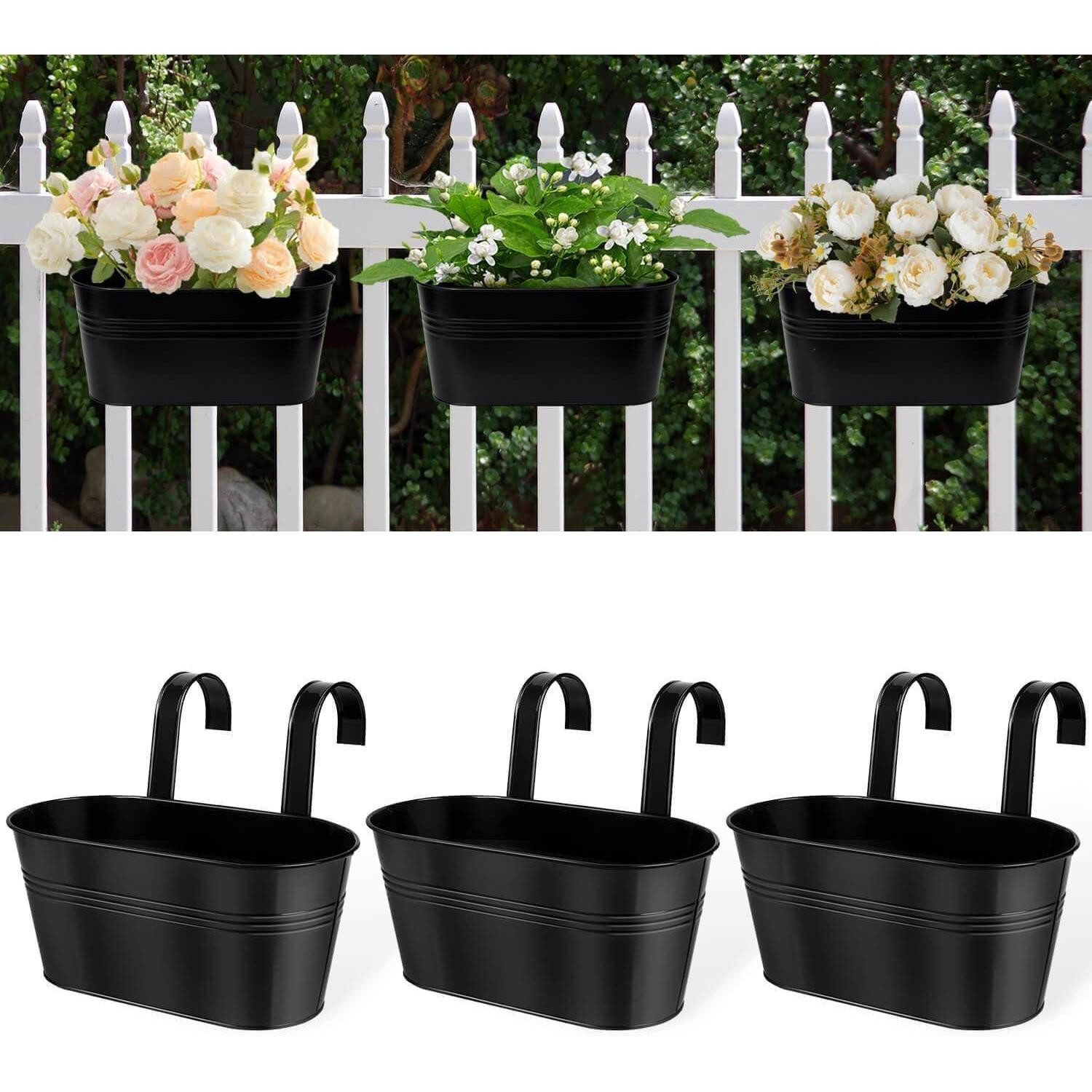 Die 3 Stück schwarzen hängenden Pflanzgefäße eignen sich perfekt für eine Vielzahl von Pflanzenarten wie Blumen, Kräuter oder Sukkulenten. Darüber hinaus können sie als stilvolle Aufbewahrungseimer für Kosmetika, Küchenutensilien und mehr verwendet werden. Die abnehmbaren Haken ermöglichen eine einfache Befestigung an Balkonen, Zäunen oder Geländern und helfen Ihnen, Platz zu sparen. Dank des Drainagelochs am Boden bleibt der Boden gut belüftet und entwässert.