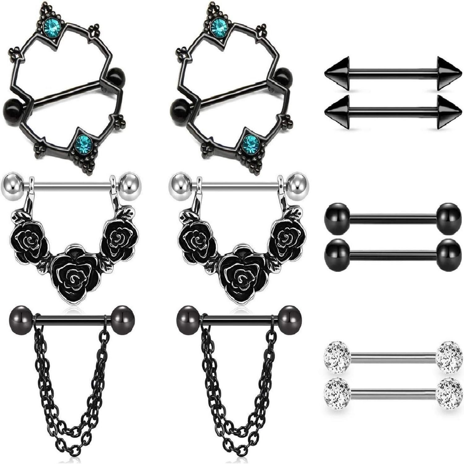 Die Nippelpiercings sind aus hochwertigem Edelstahl hergestellt, was sie langlebig und robust macht. Die Stablänge der Barbells beträgt entweder 16mm oder 21mm, die Kugeln sind jeweils 5mm groß. Sie erhalten insgesamt 6 Paar Nippelpiercings, die Ihnen eine vielfältige Auswahl für verschiedenste Looks bieten.