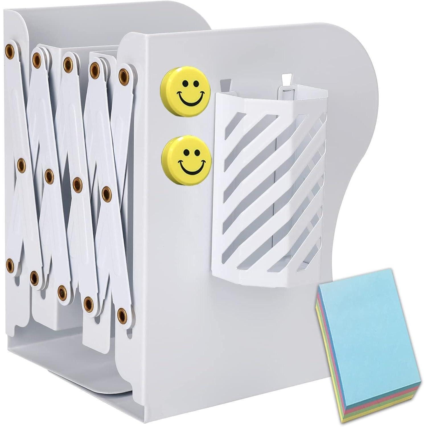 Diese Buchstützen können Zeitschriften, Bücher, DVDs, Spiele, Kataloge, Enzyklopädien, Lehrbücher, gebundene Bücher, Comics, Flipcharts, Kochbücher, Nachschlagewerke, Familienalben und vieles mehr sicher aufnehmen. Dank des verstellbaren Designs können sie je nach Bedarf von 10 cm bis 50 cm eingestellt werden. Die drei vertikalen Fächer ermöglichen eine geordnete Aufbewahrung verschiedener Artikel.