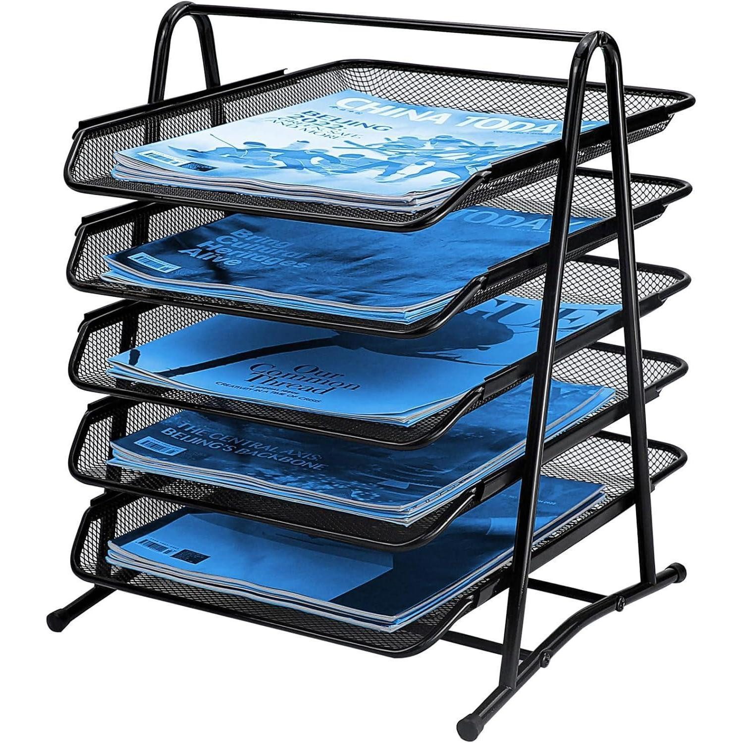 Die Briefablage für Büro aus Metall ist ein praktischer und formschöner Organizer, der auf keinem Schreibtisch fehlen sollte. Mit insgesamt 5 Ebenen bietet dieser Schreibtisch Organizer ausreichend Platz, um Dokumente, Papier und andere Unterlagen übersichtlich zu ordnen. Das Zusammenbauen ist kinderleicht und erfordert lediglich einen Schraubenzieher, um die Ablagefächer schnell einsatzbereit zu machen.
