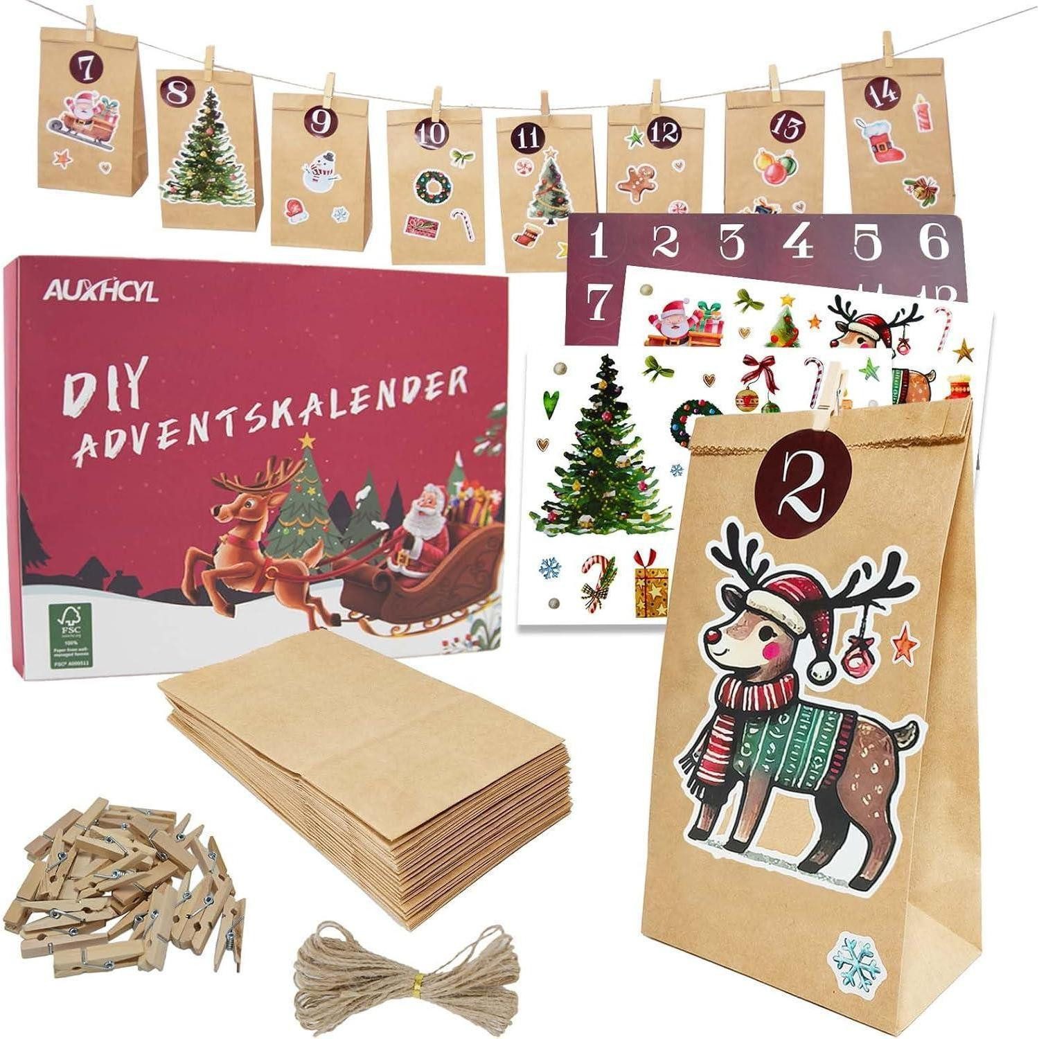 Mit diesem Komplett-Set von AUXHCYL wird der Advent zum puren DIY-Erlebnis: Perfekt für den 2025 Weihnachtskalender Selber Machen. Es enthält 24 Pcs DIY Adventstüten zum Befüllen – ideal für Adventkalender Selber Basteln für Kinder & Erwachsene Natürliche Farbe. Die natürliche Farbgebung passt sich jeder Dekoration an und lässt deiner Fantasie freien Lauf. Ideal für gemeinsame Bastelstunden, gemütliche Abende und kleine Rituale der Vorweihnachtszeit.