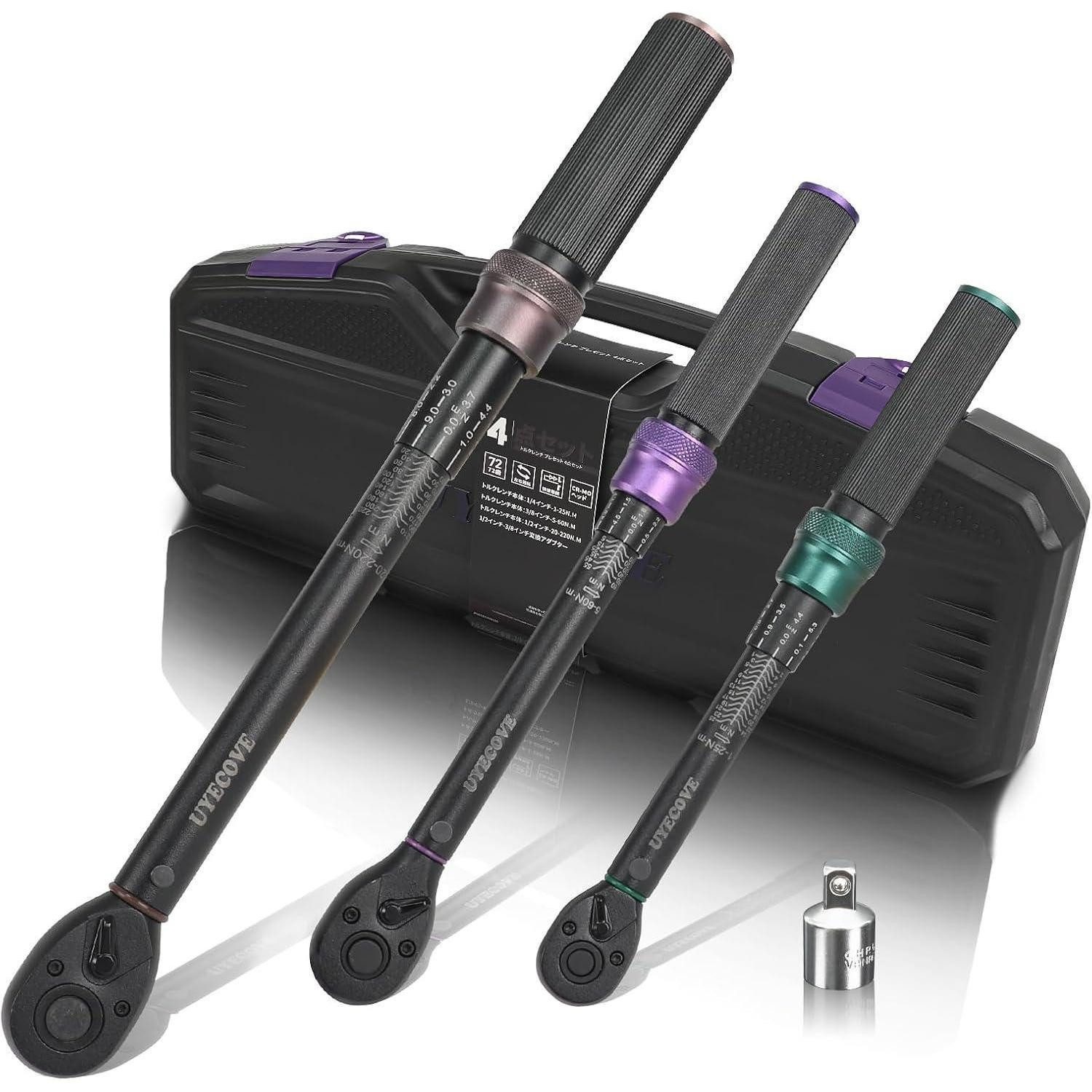 Stell dir vor: Du arbeitest an deinem Fahrrad, Motorrad oder Auto und jedes Drehmoment sitzt dort, wo es hingehört. Das Drehmomentschlüssel Set 3teilig 1/4 3/8 1-220Nm 1 4, 3 8, 1 2 set von UYECOVE macht Präzision zu deinem täglichen Begleiter. Mit drei Größen deckt es die gängigen Anwendungen ab: 1/4" 1-25 Nm, 3/8" 5-60 Nm und 1/2" 20-220 Nm. Jedes Werkzeug wird vor dem Versand vollständig auf seine Genauigkeit geprüft — eine zuverlässige Garantie für langlebige Präzision. Wichtig: Stelle den minimalen Drehmomentwert ein, wenn du ihn nicht benutzt, um die Lebensdauer des Drehmomentschlüssels zu verlängern. Die Griffskala nutzt Lasertechnologie, die Doppelbereichsskala ist klar lesbar und verschleißt nicht, und der rückwärtsdrehbare 72-Zahn Cr-Mo-Ratschenkopf, der Schnellspannmechanismus sowie der Anti-Rutsch-Aluminium-Griff machen jede Anwendung zum Kinderspiel.