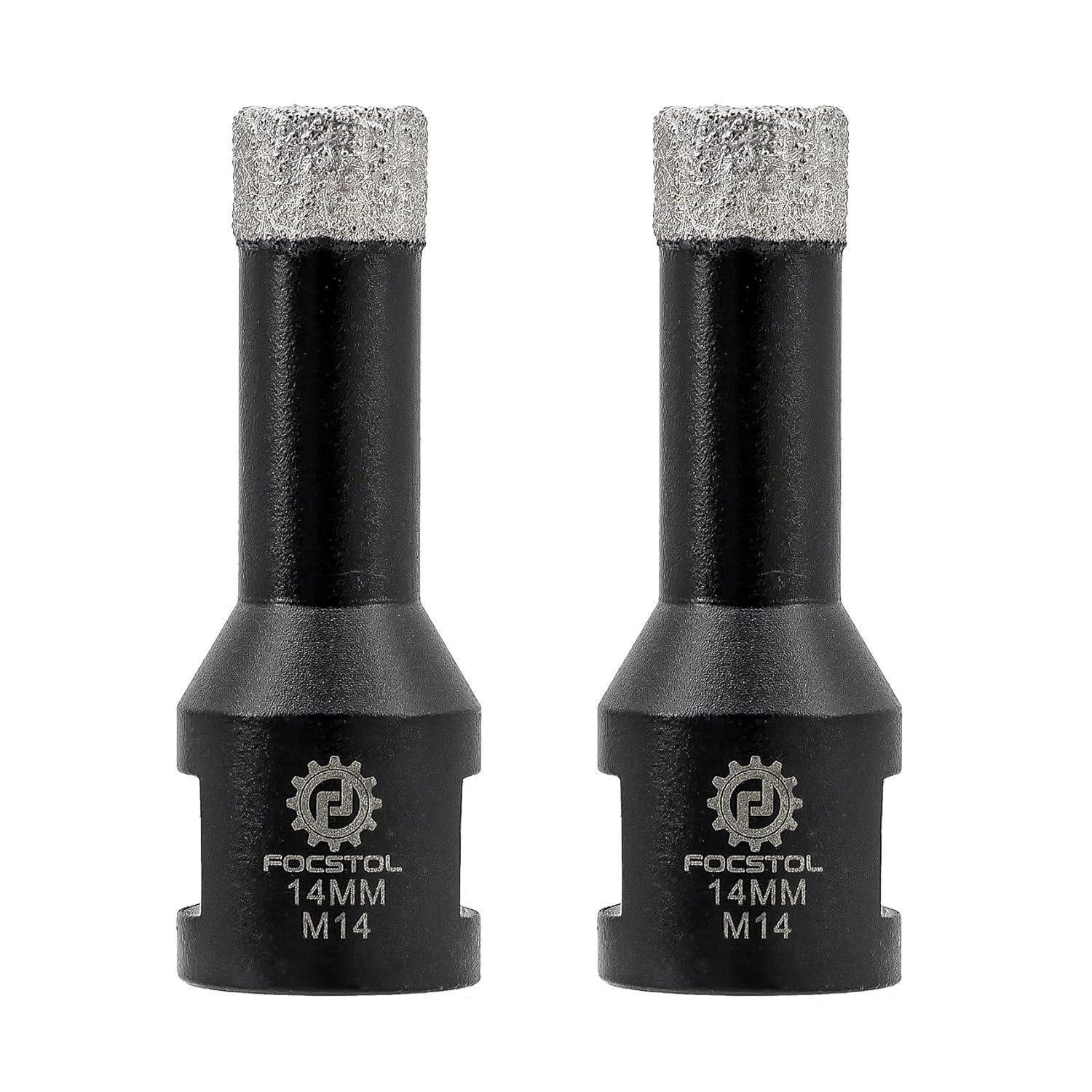 FOCSTOL Diamant Fliesenbohrer 2 Stück 14mm Vakuumgelötete Diamant Lochsäge für Porzellan Keramik Fliese Marmor Granit Stein Quarz M14 Gewinde 14mm*2 – eine Wahl, die deine Werkstatt transformiert. Mit dem passenden Winkelschleifer (M14) erreichst du selbst engste Räume mühelos – und bist beim nächsten Fliesenprojekt sofort bereit, perfekte Löcher zu setzen. Wage den